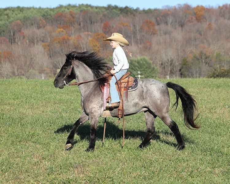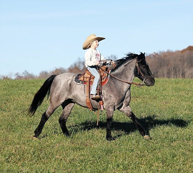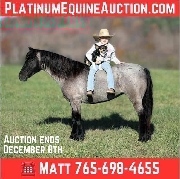 ONLINE AUCTION Place your bids at www.PlatinumEquineAuction.com Starting Bid $3500 Auction ends December 8th, 2024 Need a new saddle? Check out White Rock Saddles on our website or Facebook! This one here is a tough one to let go but as we always say “You can’t keep them all!” Blueberry Muffin is a 12.2H, 7 year old, True Blue Roan Quarter Pony mare and she has been with us almost 2 years now and over that 2 year span she has been rock solid and 100% dependable! She has been ridden daily and at times left out in the pasture for up to 3 months and she is still the same respectable lady even after a layoff. Blueberry has been ridden by all ages even as young as 5 and ridden by smaller adults as well. We have shown her in leadline classes and used her at birthday parties for the kids to ride. Our kids ages 5-11 have ridden her around the ranch and been out in the pastures to check the cows. The kids like to go chase the calves around on her and she enjoys it too. She has been trail ridden extensively and geos anywhere that dads big horse can go, it doesn’t get too steep or too deep! Blueberry will climb up the steep hills and slide down the other side if need be. She will cross deep water with no issues and takes her time on the rocky terrain as well. The kids have played with her tracking the roping dummy and trotted/loped her around the barrels. Blueberry does great in the herd and is also fine being stalled. She is always the first one to the gate to meet you if she is pastured and she loves attention whether that be getting brushed or getting all decked out in glitter and braids. Blueberry lopes nice circles, takes her leads and reins around some. She tacks up and rides off quietly as well. Blueberry has been a valuable asset to our family and we are sure that she will be to yours as well! Feel free to call Lucky 13 Equine Matt 765-698-4655 or Lysandra 765-717-2041 with any questions or to make a buy it now offer. Located in Brodhead, KY. We can set up shipping for a PRE-Christmas delivery to any state. ONLINE AUCTION Place your bids at www.PlatinumEquineAuction.com Starting Bid $3500 Auction ends December 8th, 2024 Need a new saddle? Check out White Rock Saddles on our website or Facebook!