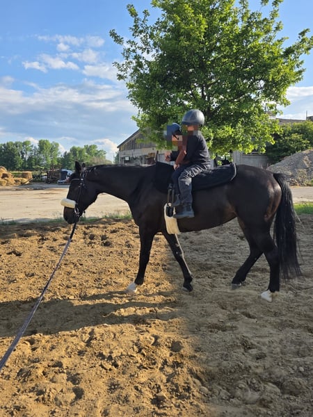 Peppa ist eine siebenjährige Halbblut Stute mit viel Ausstrahlung und dem Herz am rechten Fleck. Sie ist ca. 1,65 m groß und für jeden Spaß zu haben. Dressurarbeit auf dem Platz, kleine Sprünge oder Geländegänge, Peppa ist immer arbeitswillig , motiviert und mit voller Eifer bei der Sache. Sie möchte immer gefallen, ist neugierig und liebt Beschäftigung – am liebsten jeden Tag. Auf Grund ihrer manchmal übermotivierten Arbeitseinstellung ist sie nichts für absolute Reitanfänger. Bei ausreichend Auslastung hingegen , wäre sie eventuell sogar als Schulpferd denkbar. Im Umgang ist sie unkompliziert, schmiedefromm und lässt sich auch von Kindern problemlos führen und putzen. Wir würden Peppa gern in ambitionierte Freizeithände geben. Jemand der Zeit und Lust hat sich wirklich mit ihr zu beschäftigen und mit ihr zu einem Team zusammen zu wachsen.