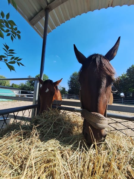 Witam, mam do sprzedania 6 letnią klacz z rocznym źrebakiem ogierem. Konie posiadają paszport są szczepione, zdrowe, kopyta mają regularnie robione. Klacz nie jest zajeżdżona, miała na sobie kilka razy siodło, jest lonżowana majac na sobie siodło, jest bezproblemowa w czyszczeniu i w codziennych obowiązkach natomiast źrebak jest surowy. Klacz ma 170 cm w kłębie a źrebak jeszcze rośnie ale jest juz bardzo wysoki jak na swój wiek. Więcej informacji i zdjęc na priv.