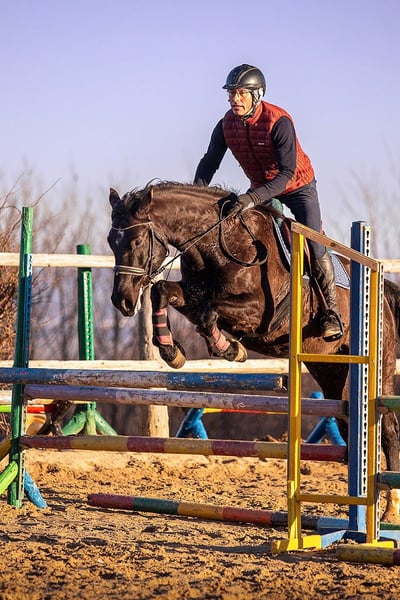 Jument élevée dans de vastes pâturages, collines et monticules au sein d'un troupeau multigénérationnel. Un tel élevage garantit de beaux sabots sains, des tendons solides, des articulations et des poumons efficaces. Jument curieuse, courageuse, sans problème lors des bains, des couvertures et des changements de licols. Vermifugée régulièrement, supplémentée en vitamines et probiotiques. Dents et morsure soignées depuis 18 mois. Structure mentale et physique solide. Utilise bien la nourriture, sans problème lors du transport. Montée à 5 ans, travaillée de manière polyvalente sur le manège et en extérieur. En entraînement régulier depuis 3 mois. Le cavalier est Adam Susłowski. Dans le pedigree, le célèbre sauteur Roland de la lignée Ramiro Z, du côté maternel Le Duc et Lord Alexander, ainsi que la légende des chevaux de Małopolska, Emetyt. Tuv réalisé il y a 2 ans sans reproche.