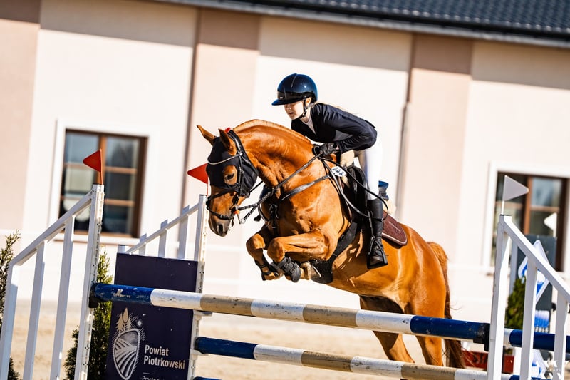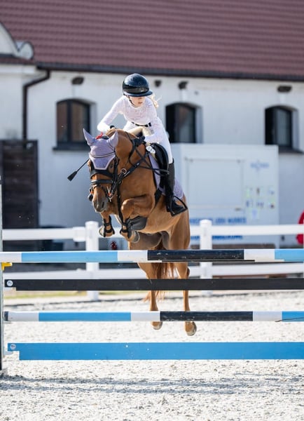A wonderful 7-year-old gelding, 155cm tall, is looking for a new, good home, ideal for a well-riding child/teenager/small, short adult. - Regularly competes in regional, national, and international competitions at the level of 110-115cm, at home jumps single obstacles up to 125cm. - Not afraid of colorful obstacles. - Does not refuse, forgives mistakes, and helps. - Eager to move forward, well-trained in dressage. - Well-behaved during transport, handling, and in new places. - Turned out, goes on trails, accustomed to dogs. - Regular vaccinations, deworming, physiotherapy visits, and farrier care. - Friendly character, safe to handle. - Purchased directly from the breeder, in one hand for 3 years. Sale only to good hands, not to riding schools. Available for viewing in Łódź, test ride costs 150zł (deducted from the purchase price). Feel free to contact via WhatsApp +48604975268.