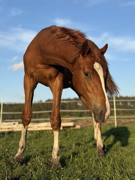 Czarujący młody ogier Dreamer, urodzony w lipcu 2024 roku, pochodzącego z hodowli łączącej najlepsze linie holsztyńskie i trakeńskie. Rodowód • Ojciec: holsztyński ogier Quantum of Solace – zwycięzca MPMK w ujeżdżeniu i WKKW, po słynnym Quarterbacku • Matka: Drzemka – w rodowodzie m.in. ogier Denetor (jeden z najlepszych koni sportowych w Polsce), po Romualdo KWPN i klaczy Darola po Cabrol hol., a w żeńskiej linii także konie z linii trakeńskiej: Arak, Kondor, Aspirant wlkp z dolewem pełnej krwi To połączenie zapewnia znakomity ruch, elegancję i predyspozycje sportowe. Dreamer jest: • Przyjazny i otwarty, łatwo nawiązuje kontakt z człowiekiem • Lubi zabiegi pielęgnacyjne, podaje nogi • Regularnie werkowany i odrobaczany • Zrównoważony, łatwy w prowadzeniu Wygląd i potencjał • Zachwyca urodą i harmonijną budową • Ruch naturalny – lekki, energiczny, z aktywną pracą zadu • Potencjał sportowy: ujeżdżenie i WKKW