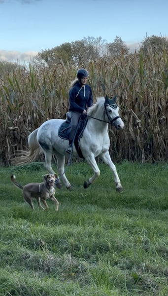 Versatile Partner for Ambitious Dressage and Recreational Riders I am looking for a new home for my 2016-born Polish Warmblood mare, 15.2 hands. She has been in my possession for five years, during which I have personally trained her with patience, time, and love. She is solidly trained up to novice level in dressage, and we are currently working on first-level L-tests. She is eager to work, sensitive to ride, and always strives to please her rider. She also enjoys small jumps. Her greatest strength is definitely trail riding: she is a brave, reliable partner who confidently navigates alone or in a group, making riding simply fun. She has a healthy amount of go, remains clear-headed at all times, and never acts out. At competitions or in new environments, she remains curious, fearless, and well-behaved. She is not a “classic” competition horse in terms of conformation, but impresses with her attitude and character – she always gives her best. In handling, she is very straightforward: she loads well, is calm at the farrier, and easy to handle daily. She is also familiar with children but knows her limits and what she can do with them. She is very social but ranks high in the herd. Health-wise, she is a very uncomplicated horse: she has never been seriously injured or ill in her life. However, she has PSSM2 and requires appropriate management (lots of movement, tailored feeding, blankets, etc.). Currently, she is well-adjusted and in the best condition she has ever been. It is important that her future rider is willing to understand her needs: she clearly shows when she has a bad day – then training should be adjusted or she should be given a break. She should not be ridden by overly heavy riders. She has received regular osteopathic and dental care. Physiotherapy is advisable due to PSSM and should continue – I am happy to share my experience here. She is a real heart horse that gives back so much to her person. Initially, she needs some time to build trust and to be understood riding-wise. Once this connection is established, she is an absolutely reliable, sensitive partner. In short: for people seeking a trustworthy horse with heart. I am not selling her out of necessity – quality over price! No beginners or riding school use. Equipment can be included if desired. A trial ride costs €20. If you are genuinely interested, I look forward to hearing from you. I am happy to share additional photos or videos.