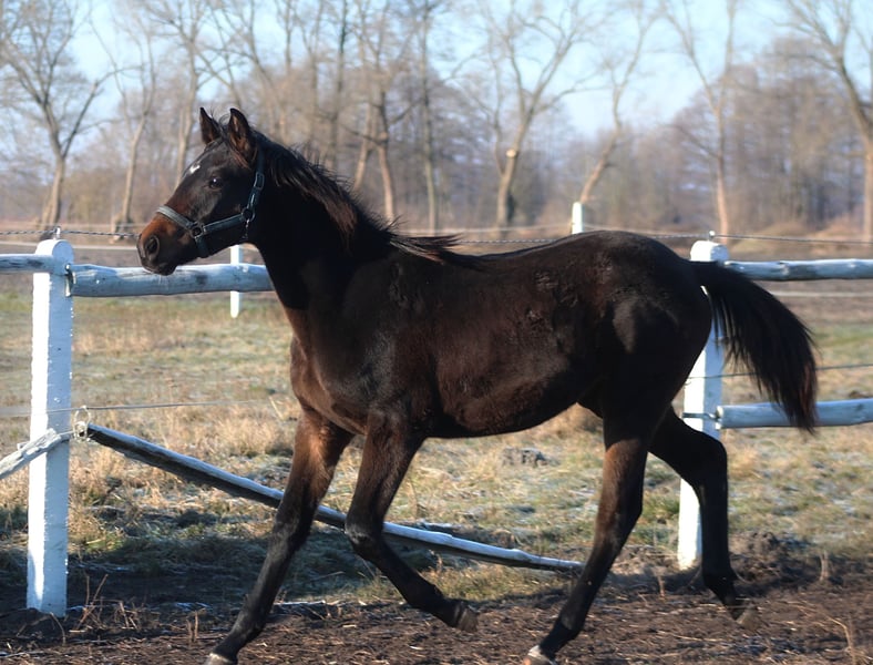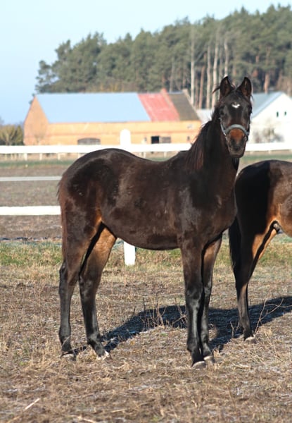 A beautiful filly, chocolate color , is looking for a new home. This horse is a potential future horse for eventing, hunting, cross or show jumping due to its pedigree and excellent movement. Leblanc's sire is leopard stallion Perfekt Love (Love Affair # Treflowa Dama), who has achieved success in show jumping - Last picture ! Love Affair (150 cm Level) is a top-class Hanoverian sire, born in Germany, with an excellent jumping and dressage pedigree. His sire is the English thoroughbred sire Lauries Crusador, known for producing horses with excellent movement and athletic predispositions, and his dam comes from a line that produces both show jumping and dressage horses. Love Affair's offspring have won numerous championships in Poland, both among foals and at the Polish Championships for Young Horses in dressage. His offspring are distinguished by their harmonious conformation, beauty, phenomenal movement, and excellent temperament, making them ideal candidates for both show jumping and dressage. Love Affair is a stallion whose genes guarantee potential, beauty, and temperament, and his offspring continue the tradition of breeding horses outstanding in both athleticism and character. Dam comes from from the best Anglo-Arabian lines (Efekt (145 cm level) -Lozanna /Huzar/Jalenny AA). Stallion: Huzar - Polish Vice-Champion of 4-Year-Old Horses in Eventing 3rd place Polish Championship for 4-Year-Old Horses in Show Jumping 7th place CIC* Strzegom (2010) 5th place CIC* Jaroszówka (2011) 6th place CIC** Sopot (2011) World Championship for Young Horses in Le Lion d’Angers (2010) 2nd place CIC* Biały Bór (2013) 5th place CCI** Sopot (2014) 10th place CIC*** Baborówko (2015) Bronze medal at the Polish Senior Championships CIC*** Sopot (2015) The filly is extremely correct, with straight, strong legs and correct hooves. She has a lovely, very pro-human nature. Raised on extensive pastures and exercised daily, she currently runs in the paddock with a group of youngsters. She is fed high-quality feed. If she becomes a breeding horse, she could produce leopard offspring Very well-behaved, walks on a lead rope, is vaccinated, dewormed, etc. Brave, and familiar with dogs, cats, tractors, etc. Estimated target height: approximately 166-8 cm Polish Sport Horse passport Price + 8% VAT Located in Poland near german border. Transport can be arranged WhatsApp + 48 513 179 245