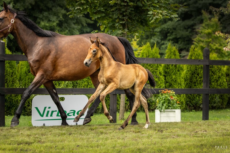 Glamour Girl Only FW ist die Tochter der hervorragenden grauen Stute Geneve de Muze. Sie ist die älteste und am besten bewährte Sportstute unter den Nachkommen, die wir von Joris de Brabander importiert haben. Unter Christopher de Brabander trat sie in Wettbewerben bis zur internationalen Höhe von 150 cm an und hat bereits lizenzierte Hengste wie LE COULTRE DE MUZE, NAIROBI DE MUZE (in SO Celle), JULE DE LAUZELLE sowie mehrere international erfolgreiche Sportpferde hervorgebracht. Sie ist die Tochter des Weltmeisterhengstes VIGO D'ARSOUILLES von Philippe Lejeune (BEL), Enkelin des nicht weniger hervorragenden Nabab de Reve und Urenkelin des mehrfachen Weltmeisterhengstes Quidam de Revel, der zu den besten Springpferdevererbern gehört. Die Mutter von Geneve ist eine Tochter des Holsteiner Latano, der vom legendären Landgraf I abstammt, was ihr die graue Färbung verleiht. Auch sie hatte eine erfolgreiche Sportkarriere – Wettbewerbe bis 150 cm. Ihr vollbrüder FD Parcival trat sogar auf einem noch höheren Niveau an. In den folgenden Generationen finden wir Hannoveraner Pferde mit überdurchschnittlichem Vollblutanteil durch den Hengst Sudan xx. Der Vater der Stute ist Kasanova de la Pomme. Der 2010 geborene braune Kasanova de la Pomme befindet sich derzeit auf dem Höhepunkt seiner sportlichen und züchterischen Möglichkeiten. Er gehört zu den herausragendsten Vertretern der Linie des Hengstes Der Loewe xx über den legendären Darco (Ludo Philippaerts). Gleichzeitig ist er auch einer der bedeutendsten Vertreter der Familie der Stute Kerly, die eine der grundlegenden Säulen des belgischen Zuchtprogramms darstellt. Darüber hinaus ist sein Vater Bamako de Muze (Karline de Brabander), ein ehemaliger internationaler GP-Springer, ein Vertreter einer weiteren großartigen Stutenlinie - der Stute Ifrane AA. Auch die Mutter von Kasanova, die internationale GP-Springerin Everlychin de la Pomme, hatte eine ebenso spektakuläre Karriere und ist zudem die Mutter des leider früh verstorbenen BWP-Champions Hengst Latour VDM. Im Alter von 3 Jahren wurde Kasanova zum Champion der BWP-Hengstzulassung gekrönt. Von Anfang an erregte er das große Interesse von Züchtern für Springpferde weltweit. Sein ältestes Nachkommen hat bereits an internationalen GP-Wettbewerben teilgenommen. Besonders hervorzuheben sind: H5 Origi Horta, Obama van de Kwachthoeve, Kalimera van de Nethe Z, Pommery van het Ijzern Lindehof, Peanuts Horta, Oklahoma van de Zelm und Olympic Merrethof. In den letzten Jahren wurden über 10 Söhne von Kasanova bei verschiedenen Hengstselektionen zugelassen. Die intensive Nutzung in der Zucht hindert Kasanova nicht daran, auf höchstem internationalen Niveau zu starten, wo er von Koen Vereecke geritten wird. Zu den bisher wichtigsten Erfolgen zählen der doppelte Sieg im Nations Cup-Finale in Barcelona, der Sieg in Wiesbaden sowie fehlerfreie Runden in den GP 5* von Falsterbo, Hickstead, Dublin und Rom. In der Saison 2022 war er das beste belgische Paar in den Nations Cups. Im Jahr 2024 waren sie nur einen Schritt von der Teilnahme an den Olympischen Spielen in Paris entfernt und erfüllten alle Qualifikationskriterien.
