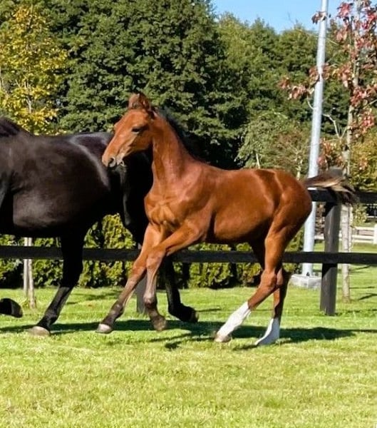 Fay Only FW is a daughter of First Call de Muze Z, out of the majestic For Pleasure, who, under Lars Nieberg and later Marcus Ehning, won a total of 5 gold medals at the world's largest equestrian events: World Championships, European Championships, and the Olympic Games. These results make him the most decorated stallion in the world. First Call de Muze Z is one of the mares through which the blood of the mare of the century, Ratina Z, is maintained at the de Brabander stud. Ratina Z, under Piet Raymakers and later Ludger Beerbaum, won 3 Olympic medals (including 2 golds), 2 golds at the European Championships, the World Cup, and the World Championship. The mother of First Call competed at the level of international Grand Prix and is a daughter of the clone of Ratina Z. This maternal line has produced many outstanding horses, including full brothers Ratiny Rebel Z I-III, as well as Crown Z, Rex Z, Ahorn Z, Heureka, Goliath Z, and from the youngest generation at Joris, the stallion Cuba Libre de Muze, as well as the son of First Call - Istambul MVD. The mother of the filly is the stallion Ultra Flip de Muze, from the phenomenal mare Butterfly Flip, who has competed in the most difficult competitions in the world under the Swedish rider Malin Baryard-Johnsson. Butterfly Flip is the daughter of a thoroughbred mare and the stallion Robin II Z from the jumping branch of the Polish Anglo-Arabian lineage Ramzes xo. Thus, Ultra Flip de Muze was created, a young and very promising stallion by Kasanova de la Pomme, out of the mare Quick Flip de Muze by Mosito van het Hellehof, who is already jumping at the level of 1.45 m. Her mother, Flip de Muze (by Vigo d'Arsouilles), is directly a daughter of Butterfly Flip, who also competed internationally under Bernardo Alves. In competitions for licensed stallions, Ultra Flip impressed with his riding qualities and scope.