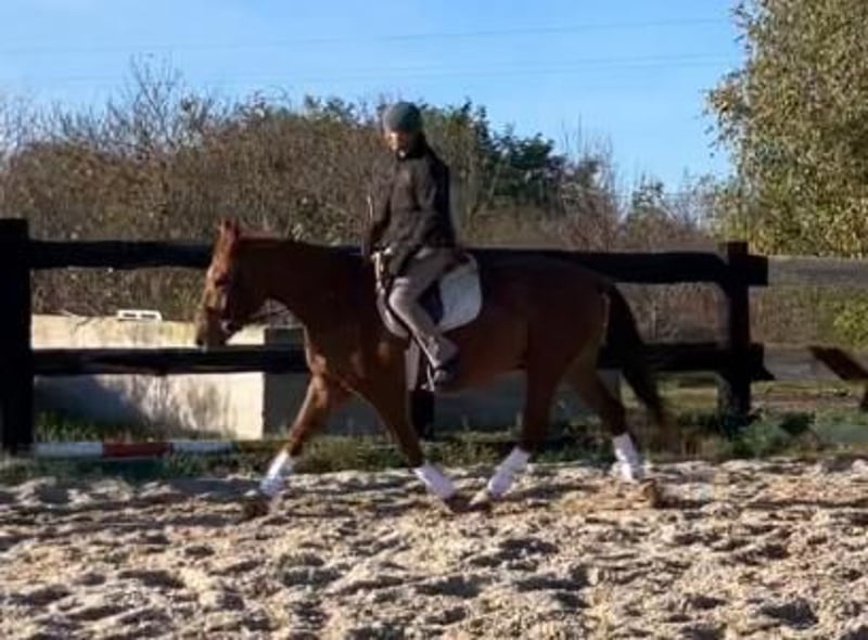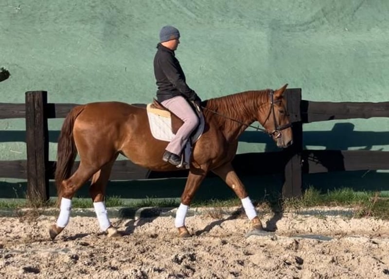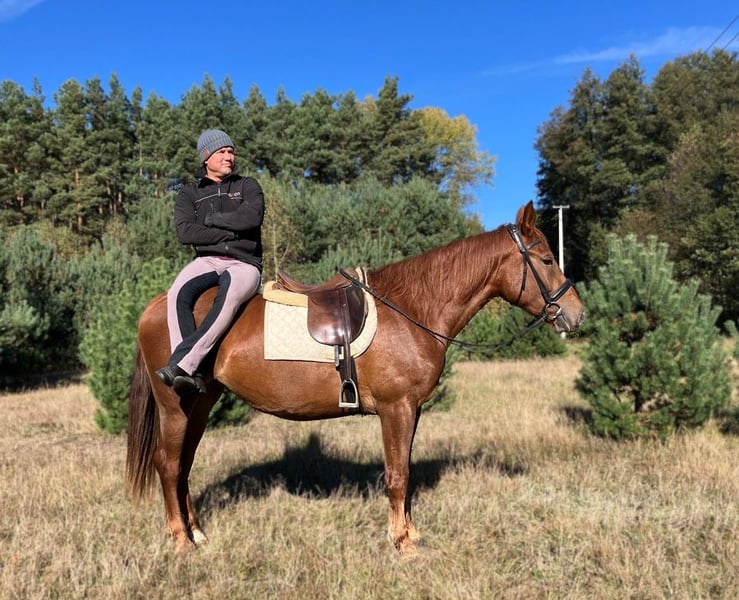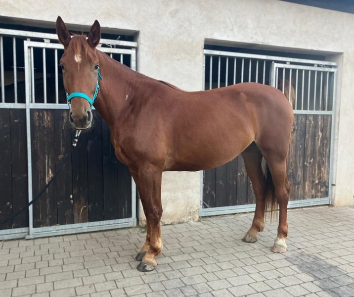 For sale is the 3.5-year-old mare Markiza. She stands approximately 160 cm at the withers and impresses with her friendly character, calm demeanor, and willingness to learn. Markiza has been correctly and gently backed and works confidently in all three basic gaits in the riding arena. She demonstrates a pleasant work attitude, remains rideable, and stays consistently balanced. She is suitable for both solo and group hacking. In daily handling, she is very well-behaved, personable, and uncomplicated. She is accustomed to box stall housing as well as daily turnout in pastures or paddocks and gets along well with other horses. She occupies a middle position in the herd hierarchy and behaves socially and conflict-free. Markiza is used to routine stable chores, familiar with agricultural machinery, and interacts well with various pets and livestock. She is easy to groom, lead, tie, and load. Markiza is a mare that is ideally suited as a leisure and family horse, with potential for small-scale competitive riding in the future. - The mare is located in Poland, about 70 km from Görlitz. - Transport can be arranged. Video link of training in the riding arena: https://youtu.be/croEhIsA3Dk