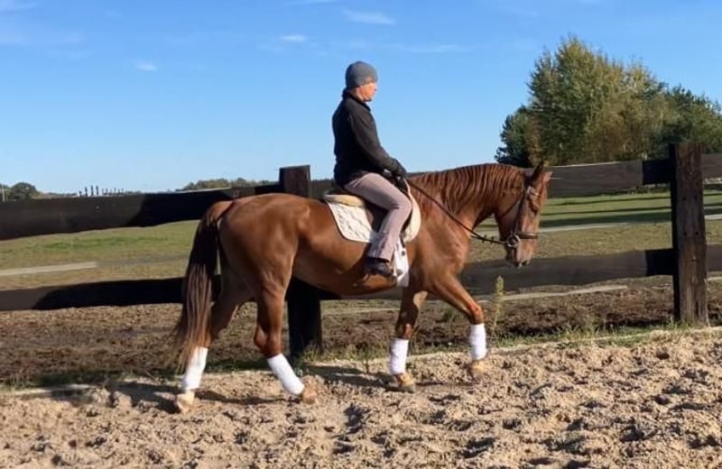 Zum Verkauf steht die 3,5-jährige Stute Markiza. Sie hat ein Stockmaß von ca. 160 cm und überzeugt mit ihrem freundlichen Charakter, ihrer Gelassenheit und ihrer Lernbereitschaft. Markiza wurde korrekt und schonend angeritten und arbeitet sicher in den drei Grundgangarten auf dem Reitplatz. Sie zeigt eine angenehme Arbeitseinstellung und bleibt stets rittig und ausgeglichen. Sie geht sowohl alleine als auch in der Gruppe ins Gelände. Im täglichen Umgang ist sie sehr brav, menschenbezogen und unkompliziert. Sie kennt sowohl Boxenhaltung als auch tägliche Weide- bzw. Paddockzeiten und ist verträglich mit anderen Pferden. In der Herdenhierarchie steht sie in der Mitte und verhält sich sozial und konfliktfrei. Markiza ist an alltägliche Stallarbeiten gewöhnt, kennt landwirtschaftliche Maschinen sowie verschiedene Haustiere und Nutztiere. Sie lässt sich problemlos putzen, führen, anbinden und verladen. Markiza ist eine Stute, die sich sowohl als Freizeit- und Familienpferd hervorragend eignet, als auch perspektivisch für den kleinen Sport. - Die Stute befindet sich in Polen, ca. 70 km von Görlitz entfernt. - Transport ist möglich. Link zum Video vom Training auf dem Reitplatz: https://youtu.be/croEhIsA3Dk
