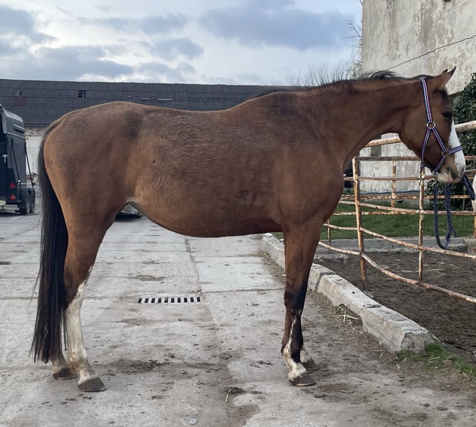 Pilnie sprzedam czteroletnią klacz rasy Polski Koń Sportowy. Ojciec: holsztyński ogier Canizares, sprawdzony w sporcie do poziomu 135 cm. Matka: po Turbud Alino. Klacz o bardzo dobrym charakterze – spokojna i grzeczna w obsłudze. Regularnie werkowana, szczepiona oraz odrobaczana. Wzrost ok. 164 cm w kłębie. Umaszczenie bułane, efektownie malowana. Zajeżdżona w wieku 3,5 roku, od tego czasu niepracowała. Przyzwyczajona do ruchu samochodowego, tirów, psów. Stanowi doskonały materiał zarówno do dalszego szkolenia, jak i hodowli. Więcej informacji udzielę wyłącznie telefonicznie. Kontakt tylko dla osób dorosłych. Nie odpowiadam na wiadomości tekstowe.