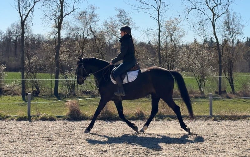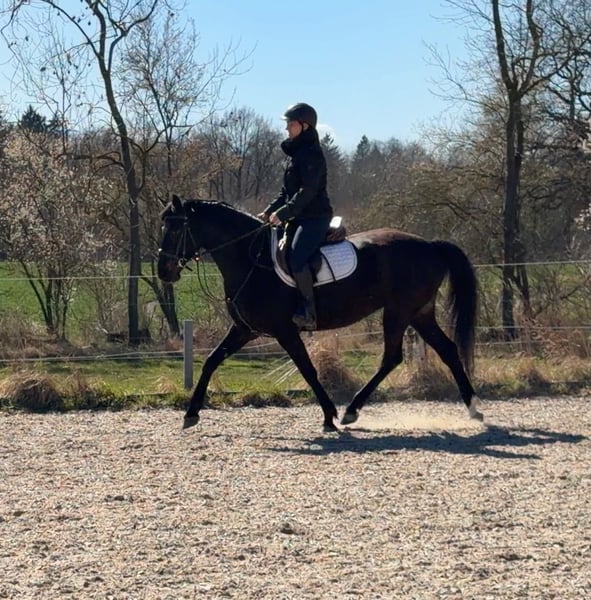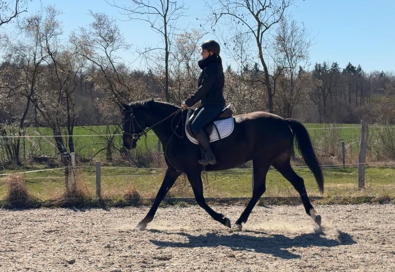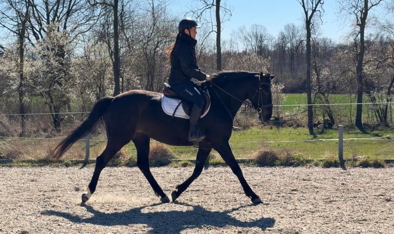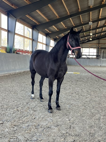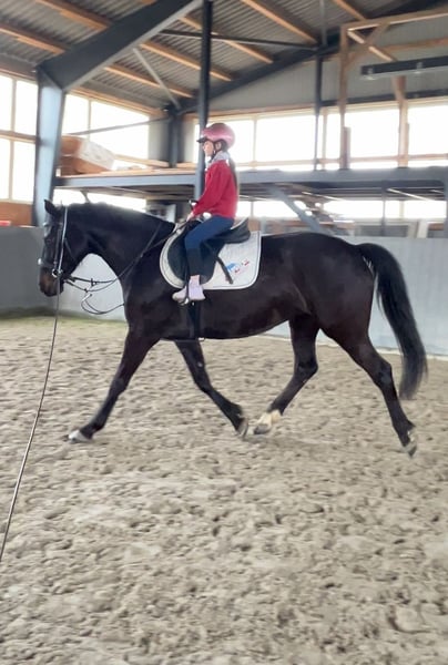 Excellent mare with top movement and high-quality jumping ability. The mare accepted the rider immediately and is currently under saddle. Great character ✅ Healthy – not lame. Strong, well-built physique, yet still light in movement 🥰 Currently approximately 16.0 hh, expected to grow to around 16.3 hh. The last picture shows the mother (M, trained in dressage and M** in jumping, has gone to breeding). The father, Opium, jumps 4.11 ft (150 cm) in the USA. More information, photos, or videos available via WhatsApp.