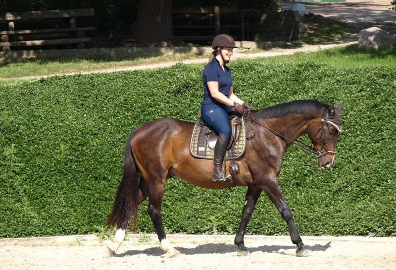 Aufgrund persönlicher Umstände steht mein Warmblut Wallach Jack zum Verkauf. *2010 (15 Jahre) 2014 aus Polen importiert Stockmaß ca. 160cm Equidenpass vorhanden Geimpft und entwurmt Schmiede- und Verladefromm Er hat ein paar gesundheitliche Baustellen die nicht verschwiegen werden sollen, er wird daher ausdrücklich als bedingt reitbarer Beisteller abgegeben, auch wenn er grundsätzlich in allen 3 GGA reitbar ist. Aktuell hat Jack eine starke Mauke am linken Hinterbein, diese ist zwar schon in Behandlung, bedarf aber definitiv noch weiterer Pflege und Medikation. Durch lange Pausen und nur unregelmäßige Arbeit in den letzten 4 Jahren würde ich, bevor er wieder "richtig" gearbeitet wird, auf jeden Fall empfehlen nochmal einen Zahnarzt / Osteopathen drüber schauen lassen. Ausserdem hat er einen Spatbefund in beiden Sprunggelenken, es fällt ihm also schwer die Hinterhufe zu geben / abzusetzen und er braucht (gerade im Winter) etwas Zeit um sich einzulaufen. Ist er ausreichend aufgewärmt und geht fleißig vorwärts, macht sich das in seinem Bewegungsablauf jedoch weder unter dem Sattel noch in der Freiarbeit bemerkbar. Ausserdem fordert er ein längeres Zügelmaß ein um zwischendrin den Hals zu strecken wenn man ihn über längere Zeit konsequent in Anlehnung reitet. Die Halswirbelsäule wurde geröngt, die Bilder können eingesehen werden. Jack ist derzeit vorne beschlagen. Er hatte viele Jahre lang vorne Eisen und eine versuchte Umstellung auf Barhuf über eineinhalb Jahre hinweg hat gezeigt, dass er mit Eisen deutlich besser und belastbarer geht. Er kennt es aber auch Barhuf oder mit Hufschuhen zu laufen. Im Gelände ist er eine absolute Lebensversicherung, geht anstandlos alleine oder an jeder Position einer Gruppe. Er kennt alles an Fahrzeugen im Strassenverkehr und landwirtschaftlichen Maschinen, hat kein Problem mit Kindern, freilaufenden Hunden, Kühen oder anderen Sachen die einem begegnen könnten. Er bockt nicht, er geht nicht durch, springt nicht zur Seite und lässt sich auch von anderen nervösen Pferden nicht beeindrucken. Jacks Leidenschaft ist definitiv das Gelände, hier ist er einfach ein ideales Verlasspferd und es macht einfach Spaß mit ihm unterwegs zu sein. Meine RB hat mit Jack sehr viel vom Boden aus gearbeitet. Er kennt die Arbeit im Roundpen, Führtraining, den alltäglichen Umgang inklusive Waschen, die Arbeit an Longe und Doppellonge, Spaziergänge und kann auch gebisslos und mit Reitpad geritten werden. Jack ist, wenn man ihn zu händeln weiß, ein in jeder Lebenslage absolut verlässlicher Partner. Man kann ihn auch mehrere Tage stehen lassen und unproblematisch wieder aufsteigen und losreiten. Im Umgang benötigt er einen einfühlsamen und ruhigen Menschen. Mit hektischen, angespannten, unsicheren oder unruhigen Menschen kann er nicht gut umgehen. Wird er zu grob angefasst oder hektisch behandelt wird er misstrauisch. Er bleibt aber immer händelbar. Man muss einfach nur wissen, wie man mit ihm umgehen muss, da er seinen Reiter absolut spiegelt. Derzeit steht er in einem Offenstall, was ich mir auch schon alleine aufgrund des Spatbefundes weiterhin für ihn wünschen würde. Eine Box mit ganztägigem Auslauf gemeinsam mit anderen Pferden wäre aber auch denkbar. Jacks Rang orientiert sich an der Herdengrösse, er war bei einer kleinen Gruppe von 3 Pferden schon Chef, stand aber auch schon mit 40 anderen Pferden zusammen und war da im mittleren Rang unterwegs. Immer sozial und freundlich, Integrationen haben bisher immer anstandslos geklappt, auch in gemischten Gruppen. Aufgrund der ganzen Baustellen gebe ich ihn wie schon erwähnt als bedingt reitbaren Beisteller ab, im Idealfall an einen Menschen der einfach ein Freizeit Geländepferd sucht und bereit ist seine gesundheitlichen Probleme zu akzeptieren oder soweit es möglich ist in Angriff zu nehmen. Ein Verkauf an Reitschulen, Kinderhöfe oder Händler kommt für mich nicht in Frage, ein Probereiten ist aufgrund der Umstände ebenfalls - falls überhaupt - nur sehr eingeschränkt möglich. Falls du dich ernsthaft für Jack interessierst oder noch weitere Fragen hast schreib mir gerne.