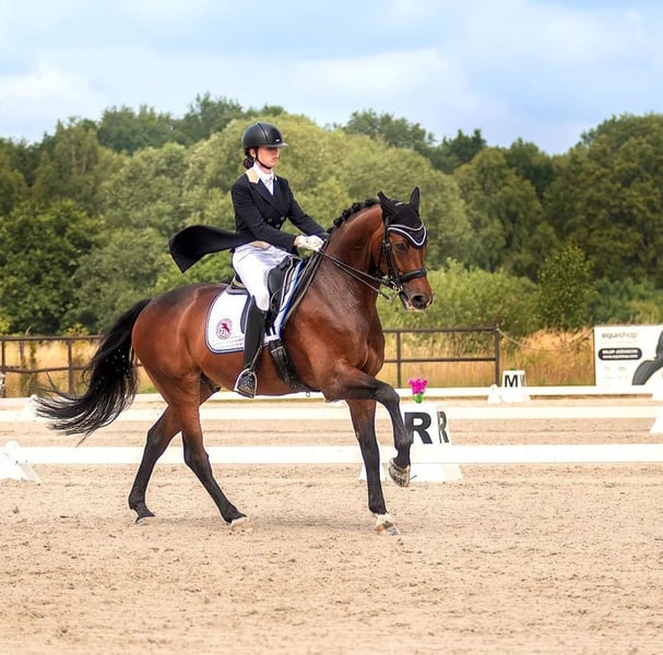 For sale: a very friendly dressage gelding. He has competed in Grand Prix level competitions. He has been ridden by the same rider since he was 4 years old. Experienced in show jumping (started competing at age 4, initially in young horse classes). He has repeatedly participated in national-level events, including the Polish Championships, as well as international competitions. Throughout the years, he has been healthy and injury-free. Gentle towards other horses, he does not kick or bite. Easy to transport. Ideal for a rider looking to develop skills on a horse that knows the piaffe and passage, and has a talent for flying changes. He is seeking a home where he can graze on pasture, and his new owner will give him the greatest love.