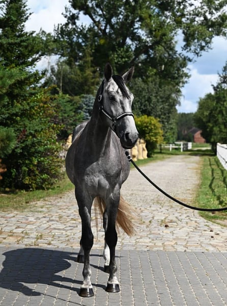 Lovely young gelding from top of the top bloodlines is looking for new good home. Tall, correct built with perfect legs, good hooves. Very good 3 gaits. Erdon is a very nice and easy to handle horse, he has very calm and friendly character. His world-class origins make him an outstanding prospect for major sport. He has very big potential, perfect jumping style. At least 10 x siblings compete level 160 cm 5 x level 150 cm 33 x level 140/145 cm He grew up in large meadows with a group of other youngsters. He had time to mature and grow healthily. Friendly to other horses. Everyday on big paddocks. Currently 173/4 cm, final ca. 175+ cm Slowly started his training . So far he knows the saddle and the rider, nothing more due to lack of time of the owner, Therefore the price is very atractive for this quality of the horse ! The price will increase with training level. The horse is 100 % healthy, has no vices, bad behaviours etc. He quite recent CLEAR X RAYS (7/2025) Vaccinated, devormed up to date. Located 50 km from PL/D border. Videos and more info WhatsApp + 48 513 179 245 Transport can be arranged .