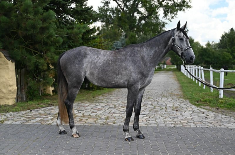 Uroczy młody ogier z najwyższej półki rodowodowej poszukuje nowego, dobrego domu. Wysoki, poprawnej budowy ciała, z idealnymi nogami i dobrymi kopytami. Bardzo dobrze porusza się na trzech chodach. Erdon to bardzo miły i łatwy w obsłudze koń, o spokojnym i przyjacielskim charakterze. Jego światowej klasy pochodzenie czyni go wyjątkowym kandydatem do dużego sportu. Ma ogromny potencjał i doskonały styl skokowy. Co najmniej 10 jego rodzeństw startowało na poziomie 160 cm, 5 na poziomie 150 cm, 33 na poziomie 140/145 cm. Wychował się na dużych pastwiskach w grupie innych młodych koni. Miał czas na zdrowy rozwój i dojrzewanie. Przyjazny wobec innych koni. Codziennie na dużych padokach. Obecnie ma 173/4 cm, ostatecznie około 175+ cm. Powoli rozpoczął trening. Do tej pory zna siodło i jeźdźca, ale nic więcej z powodu braku czasu właściciela. Dlatego cena jest bardzo atrakcyjna jak na tę jakość konia! Cena będzie rosła wraz z poziomem treningu. Koń jest w 100% zdrowy, bez nałogów i złych nawyków. Niedawno wykonano mu RAY (7/2025) i jest CZYSTY. Zaszczepiony, odrobaczony i aktualnie odstawiony. Zlokalizowany 50 km od granicy PL/DE. Filmy i więcej informacji na WhatsApp +48 513 179 245. Transport można zorganizować.
