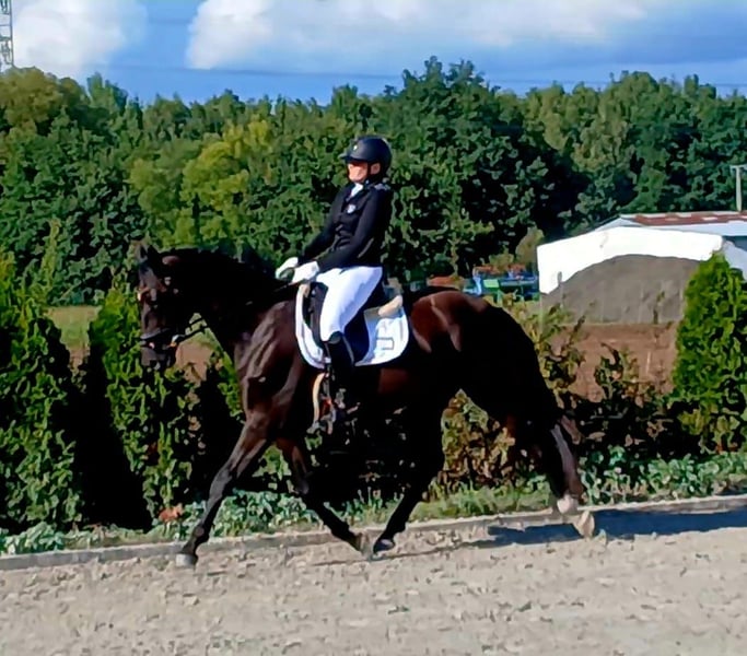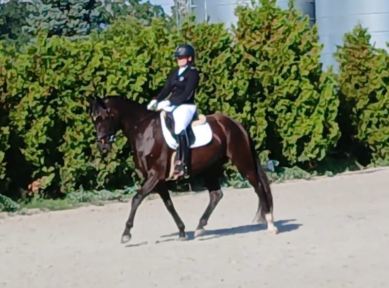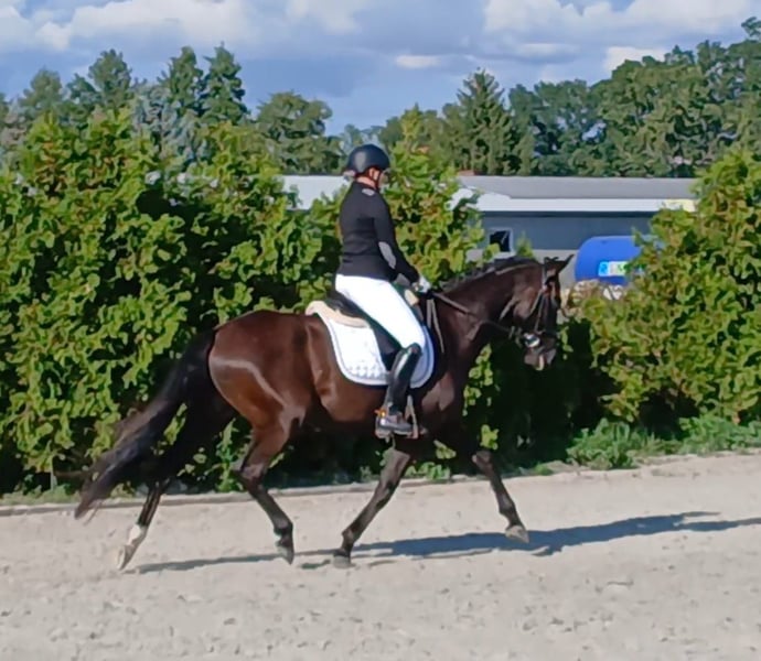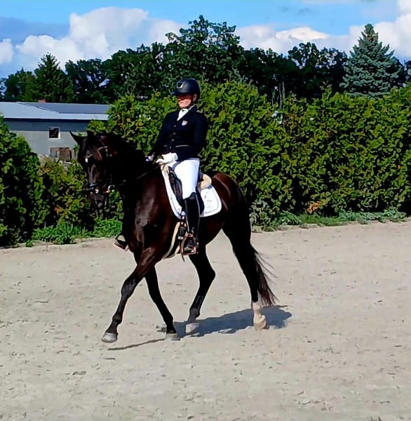 PERFECT FOR KIDS!!! Directly from the breeder! Top X-ray images Ti Amo MBF Sire: Fürst Wilhelm Dam: von Eloquent Trkh./ Saint Cloud. 2019 model. Currently about 1.60m (still growing) Absolutely dream horse with super basic gaits! Double registered. Trail safe, herd compatible. No defects, no vices. Perfect as a children's/ladies' horse TI AMO is my heart horse, which I bred and trained myself. Currently at a safe A** level with several L lessons. He is super rideable, easy, and eager to learn. He also enjoys jumping (jumps small courses). Unfazed in unfamiliar places. He is a real HEAD TURNER! Very compact, easy to handle, with a pleasant GO. Lives in an open stable but can also be kept in a box. He is farrier and loading friendly. Only to be given to the very best hands. Videos available. Location near Forst/Lausitz.