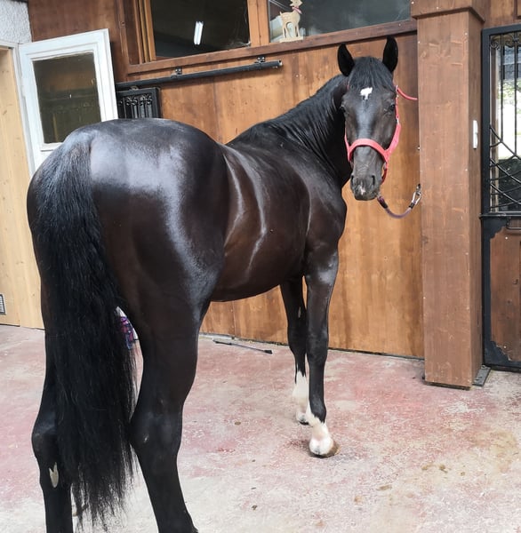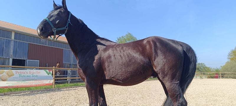Verkaufe polnisches Sportpferd – Wallach, geb. 2020, Rappe Zum Verkauf steht ein eleganter und vielseitiger polnischer Rapp-Wallach. Geboren im Jahr 2020 überzeugt er durch seine beeindruckende Erscheinung und seine schönen Gänge. Mit einem Stockmaß von 172 cm bietet er die ideale Größe für große Reiter. Baroso ist ausgebildetes Fahrpferd, ein- und zweispännig. Er zeigt sich in der Arbeit stets motiviert und wird auch nicht so schnell müde. Er ist noch nicht eingeritten, zeigt aber gute GGA, läßt brav aufsteigen und sich führen. Aufgrund von Sakroiden auf der Brust, die aber bereits durch Behandlung mit einer Salbe kleiner wurden, wird er deutlich unter seinem Wert verkauft. Bei Interesse oder für weitere Informationen stehe ich gerne zur Verfügung. Besichtigung ist nach Vereinbarung möglich.