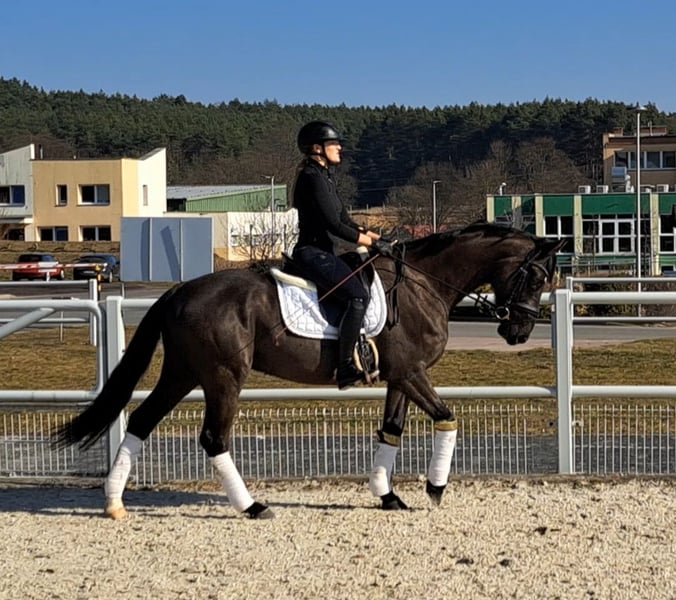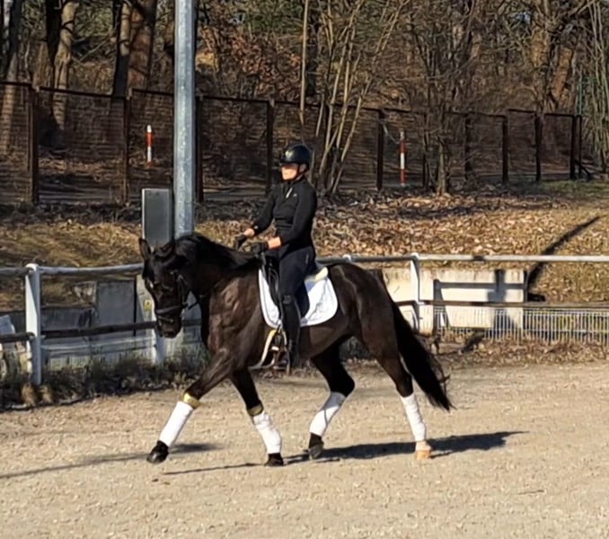 PERFECT FOR CHILDREN!!! Directly from the breeder! Excellent X-ray results Ti Amo MBF Sire: Fürst Wilhelm Dam: von Eloquent Trakh./ Saint Cloud Born in 2019. Currently approximately 1.60 m (still growing) Absolutely a dream horse with superb conformation! Double-licensed. Safe in the terrain, herd-friendly. No flaws, no bad habits. Perfect as a children's or ladies' riding horse. TI AMO is my heart horse, bred and trained by myself. He is currently at secure A** level with several L-level lessons. Very well-behaved, easy to ride, eager to learn. Also enjoys jumping small courses. Unfazed in unfamiliar surroundings. He is a real eye-catcher! Very compact, light in hand, with a willing go. He lives in an open stable but can also be stabled. Farrier and loading confident. Only to be entrusted to the best hands. Videos available. Location near Forst/ Lausitz