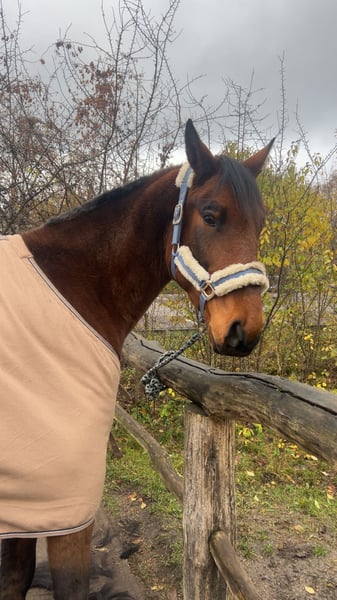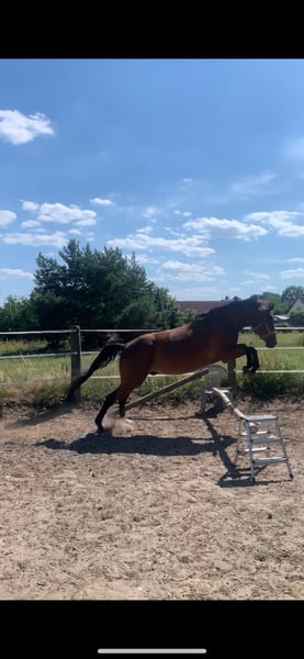 6 Jähriger Wb Wallach Wegen Umzug und einer Unfalls,sowie persönlichen Gründen muss ich mich von meinem Wallach der mich seit 4,5 Jahren begleitet verabschieden. Steht nun wochenlang,wurde davor gearbeitet vom Boden. Er kennt reitergewicht schritt,Trab ,Galopp. Wurde nie richtig gefestigt. Er ist unglaublich Schlau,ist jedoch schreckhaft aber immer Händelbar. Er ist neugierig und will alles anschauen. Stockmaß 1,64m geschätzt. Er hat Probleme mit offenen Reitplatz,geht super gern ins Gelände und währe was fürs Turnier. Die Vorfahren haben Trakehner sowie Vollblut Anteil. Er is also nicht von der dicken Sorte. Steigt,beißt ,tritt nicht. Kein Anfängerpferd,nichts für Händler oder Schulbetriebe. Ich erzähle privat gern mehr. Probereiten ist NICHT möglich. Ihm fehlt die Muskulatur. Umzug findet nächsten Monat statt,daher könnte es zwecks kennenlernen etwas dauern.