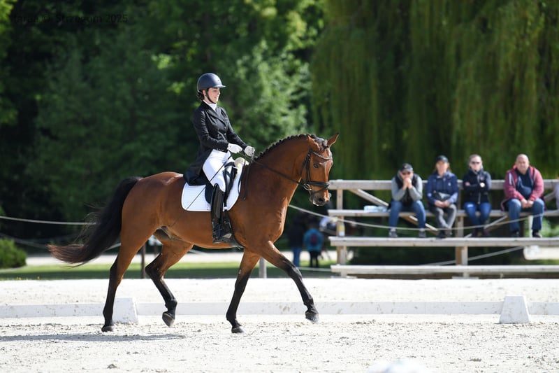 For sale: 7-year-old gelding, trained up to class C - documented performances at the level of 65-66% with potential for much more. 3rd place in MPMK - 5-year-olds. The horse is shod and used to being in a stable, accustomed to all grooming procedures, and under constant care of a physiotherapist. Gender: Gelding Date of birth: 2018 (7 years) Color: Bay Breed: SP (Thoroughbred Half-blood) Height: 173 cm Sire: Fürstentraum by Furst Heinrich Dam: Kofeina by Weltstein For more information, please contact me at: 534901693.
