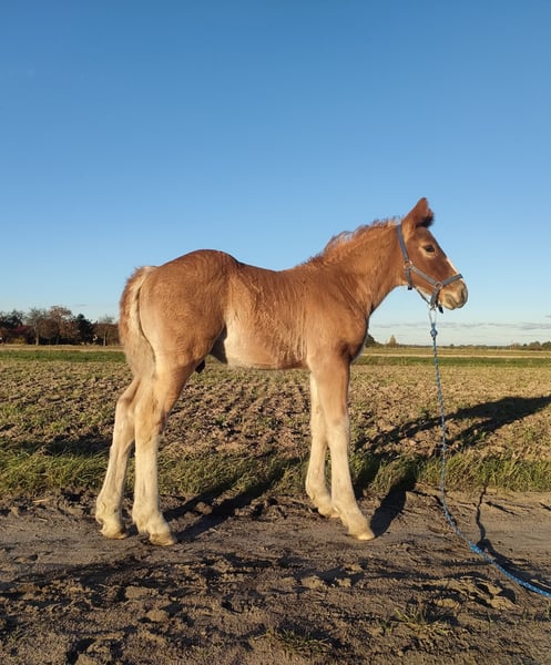 Geboren am 05.09.2025. Mutter: W-Lalka/Tajfun (z ostatnich beiden Fotos), Vater: Posejdon/Lukas. Ruhiger Charakter, zeigt Bereitschaft, die Beine zu geben, nach dem ersten Hufschmiedbesuch geht er an der Longe, ist angebunden und wird an Berührungen am ganzen Körper gewöhnt (ist misstrauisch). Lernt sehr schnell. Entwurmt. Kastration gegen Aufpreis nach Absetzen möglich. Abholung im März, nach Vollendung des 6. Monats. Zukünftig geeignet für Freizeit, als Familienpferd, für Kutschfahrten und Fotoshootings – die Mutter hat eine lange, dichte Mähne, es besteht eine hohe Wahrscheinlichkeit, dass er diese erbt. Mir ist wichtig, dass das Fohlen in gute Hände kommt, es ist kein Fleisch. Seit der Geburt verbringt er die Tage mit Artgenossen auf der Weide.