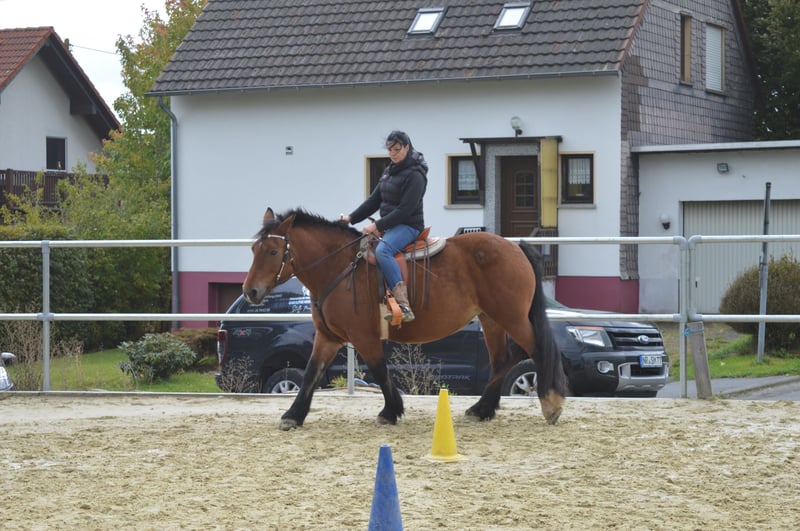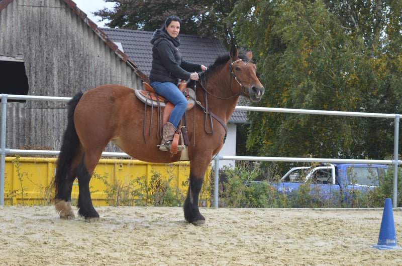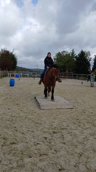 Aus Zeitgründen haben wir uns dazu entschlossen unsere 11 jährige poln. Kaltblutstute Momo zu verkaufen. Momo ist eine unglaublich liebe, aufgeschlossene, ehrliche und unverbrauchte Stute. Trotzdem ist sie kein Anfänger Pferd. Wir geben sie nur in Kaltbluterfahrene Hände und in das beste zu Hause ab. Bei uns steht sie in einem Offenstall mit einem älteren Wallach zusammen. Boxenhaltung kommt für sie nicht infrage. Sie ist verträglich mit anderen Pferden und trotzdem Ranghoch. Momo ist jetzt seit 6 Jahren bei uns und wir haben sie mit viel Geduld, langsam und ehrlich ausgebildet. Sie hat an allem Spaß und macht alles brav mit, solange der Mensch der sie führt weiß was er tut und ihr die Sicherheit gibt die sie braucht. Ansonsten entscheidet sie selbst. Alleine Ausreiten oder in der Gruppe ist überhaupt kein Problem. Die Arbeit auf dem Platz macht ihr nicht ganz so viel Spaß. Macht sie aber trotzdem gut mit. Wir bringen viel Abwechslung in ihr Training. Equikinetic, klassische Handarbeit, gymnastizierende gerittene Einheiten, Trailparkur kennt sie alles. Auf dem Platz arbeiten wir sie überwiegend im Schritt um ihre Gelenke zu schonen und ihr die Grundlagen ihrer Balance zu vermitteln. Im Gelände ist sie flott unterwegs. Zum Kutschefahren eignet sie sich nicht, da hat sie wohl schlechte Erfahrung gemacht. Momo ist eine tolle Stute die wirklich Spaß macht. Sie eignet sich hervorragend als Wanderreitpferd. Leider haben wir nicht die Zeit ihr gerecht zu werden und da sie leichtfuttrig ist und wir ihr nicht die Bewegung und Aufmerksamkeit geben können, die sie braucht und verdient, suchen wir auf diesem Weg ein neues zu Hause für sie. Es handelt sich nicht um einen Notverkauf. Wir geben sie nur ab wenn es zu 100% passt. Dabei steht uns das wohl des Pferdes an erster Stelle. Wir verkaufen sie nicht an Händler, Schul,- und oder Reitbetriebe, sondern an einen Menschen der sie, wie wir, über alles liebt und nur das Beste für sie möchte. Eckdaten: Name: Gestia Rufname Momo Rasse: polnisches Kaltblut Geschlecht: Stute Größe: 155cm Gewicht: 700kg Alter: 11 (April 2015) Preis: 6900€ Standort: 57635 Oberirsen Geimpft, entwurmt, gechipt, regelmäßig dem Zahnarzt vorgestellt, regelmäßig Physiotherapeutisch und Osteopthisch behandelt, lässt sich super verladen, Mega brav bei der Hufbearbeitung, Barhuf im Gelände mit Hufschuhen/Temporär beklebt, Gesund, hatte im letzten Jahr einen starken Milbenbefall der jedoch behoben ist, Mähne und Schweif müssen noch weiter nachwachsen, kann aufgrund ihrer Leichfuttrigkeit nicht 24 Stunden auf der Weide stehen, am besten gar keine Weide, wird nur in Offenstallhaltung abgegeben, muss weiterhin noch abnehmen. Momo hat einen Maßsattel. Dieser kann mit Zubehör für 3300€ übernommen werden. Bei ernsthaftem Interesse, freuen wir uns wenn Du Kontakt zu uns aufnimmst. Herzliche Grüße Steffi und Andrea Muß Kontakt: Steffi Muß 0151/28746390