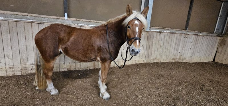 Zu verkaufen steht eine 3 jährige Mixstute, die bei uns geboren, aufgewachsen und nun angeritten wurde. Mit ihren 3 Jahren ist sie extrem brav und läuft mit Kindern sowie Erwachsenen, Wiedereinsteiger und Anfänger sehr gut alle drei Grundgangarten unter dem Sattel. Außerdem ist sie Geländesicher und macht einen großartigen Job bei der Bodenarbeit. Auch an der Doppellonge läuft sie super weshalb wir uns auch vorstellen können, dass sie bald eingefahren werden könnte. Auch die ersten Einsätze in unserem Schulbetrieb meisterte sie problemlos. Wir stellen uns Murmel als ein tolles Familienpferd vor, die jeden glücklich machen wird. Wenn Sie Murmel kennenlernen wollen melden sie sich unter 01637263720