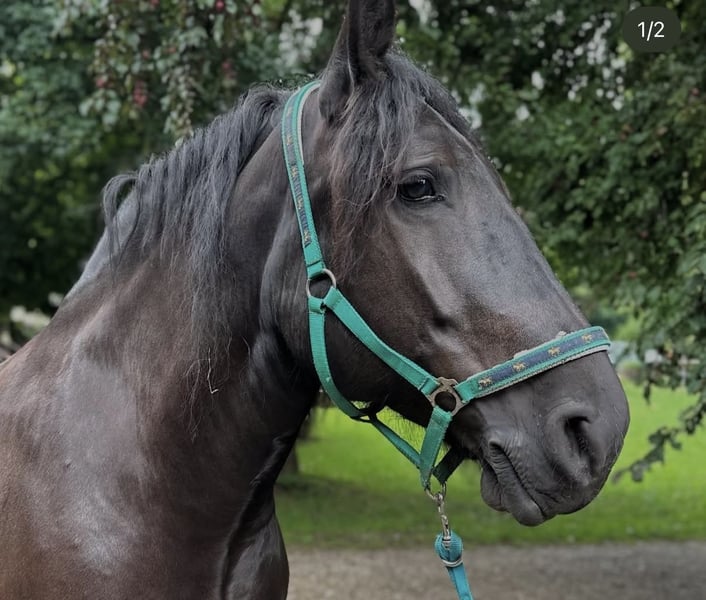 Geboren 28.04.2017, Rappe, Equidenpass vorhanden Aktuell barhuf, vorne aktuell leicht fühlig, nicht beschlagen, da Hufschmied aussetzen von 2 bis 3 Beschlagsrunden vorgeschlagen hat und bei aktuellem Weg von Paddock zum Stall und umgekehrt kein Beschlagen notwendig ist. Ursprünglich zweifach beschlagen, Hufeisen noch vorhanden. Sehr liebe und gutmütige Stute, verträgt sich gut mit anderen, Schmiede und verladefromm, ehemaliges Schulpferd