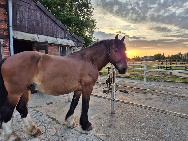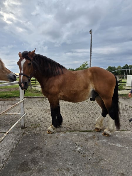 Verkaufe schweren Herzens meinen 10 jährigen Littauischen Kaltblut-Wallach Manni. Er ist ein lieber Kerl der es sehr mag am Nacken gekrault zu werden. Für eine Möhre oder nen Apfel würde er fast alles machen. Er braucht aber einen erfahrenen Reiter. Er kann alle 3 Gangarten und ist Schmiedefromm. Verladen geht leider nur mit viel Geduld und Leckerchen. Er soll in seiner Heimat auch Kutsche gefahren worden sein, hier wurde er nur geritten. Manni ist barhufer und ist trotz seiner größe Leichtfutterig. Er ist 1,68m groß und wiegt ca. 650kg, ist geimpft, gechipt und wurde gerade entwurmt. Manni steht in Boxenhaltung und ist ganzjährig tagsüber in einer gemischten Herde mit 2 Stuten und einem Wallach auf der Weide. Sattel und Zubehör kann auf Wunsch gegen Aufpreis mitgegeben werden. Besichtigen und Probereiten ist nach Absprache möglich. Nicht an Schulbetriebe/Händler abzugeben. Bei Rückfragen Mo-Fr ab 18 Uhr oder am Wochenende 0170-9686379