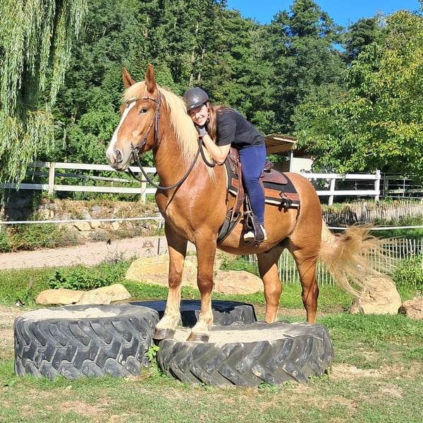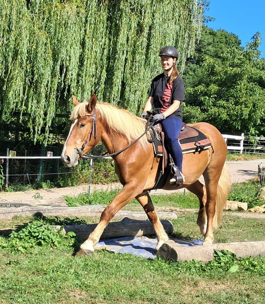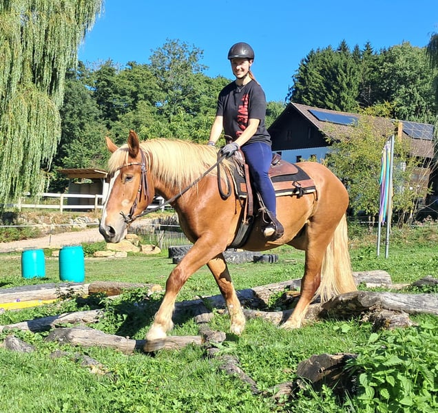 Rössli is a cuddle-worthy horse! People-oriented gelding with a friendly temperament, born and trained with us, robust, healthy, well-socialized, easy to ride, comfortable to sit on, knows nothing bad, trailer loading, farrier, etc. everything is top-notch, ready for new adventures, 3 years old, final height 163 cm. For trail riding, outdoor riding, and leisure riding. Both English and Western riding are possible. Accustomed to open stabling and herd living, a box stall is also no problem. Equine passport available. All our horses are familiar with groundwork, various terrains, cars, agricultural machinery, as well as cows, donkeys, sheep, pigs, dogs, cats, and chickens. For information and appointment scheduling, please call 08536-2890292 (voicemail available) or 0157-78378455 (no mobile network at the stable). Please no private messages, emails, or WhatsApp inquiries!! Sunday is a day off. Accessories and transport can be arranged at a low cost. Every customer is granted a contractual right of exchange for 6 weeks. Prices are fixed prices. No inquiries for installment payments are welcome. Those who come with a trailer and take the horse will receive a €100 discount. Upon purchase, a deposit of €1000 in cash is required. Anyone who wants to take the horse immediately must, of course, pay in full. We conduct a ride with customers on two horses of your choice, so you can get to know your dream horse and check if it is the right horse for you. Each appointment costs €35, regardless of whether riding, showing, preparing, or walking... each additional rider (friend, sister, trainer...) pays the same if they ride along, just watching costs us time and thus €20. The amount will be refunded on the same day when purchasing a horse. Due to multiple occurrences, we kindly ask for truthful information regarding the rider's weight. In case of untruthful information, we reserve the right to decline a test ride on-site. For the sake of our horses, we do not want to burden our well-built horses with more than 120 kg. As this is a living animal, these are merely impressions from the caretaker and not guaranteed properties of the horse. Further horses/ponies are available in my other ads or upon request.