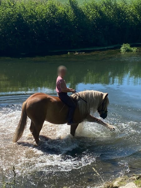Verkaufe polnisches Kaltblut – eleganter Wallach Zum Verkauf steht ein wunderschöner polnischer Kaltblut-Wallach, geboren im Jahr 2019. Dieser charmante Fuchs mit langer Blonder Mähne begeistert durch sein freundliches Wesen und seine beeindruckende Erscheinung. Mit einem Stockmaß von 155 cm ist er perfekt für die Freizeitgestaltung geeignet. Das Pferd ist gut ausgebildet und arbeitet gerne mit. Er ist freundlich im Umgang, verkehrssicher und eignet sich hervorragend für entspannte Ausritte, Spaziergänge und die tägliche Freizeitgestaltung. Er kennt Dressurgrundlagen, Bodenarbeit, Longen Arbeit, ist an das Geschirr gewöhnt, hat aber noch nicht gezogen. Er hat einen raumgreifenden fleißigen Schritt und lässt sich im Trab und Galopp jederzeit regeln. Er geht sowohl alleine, als auch in der Gruppe ins Gelände und kennt es, dass ein Pony als Führpferd in allen Gangarten mitläuft. Seine robuste Konstitution und sein angenehmer Charakter machen ihn zu einem idealen Freizeitpartner. Aufgrund seines Alters ist er kein reines Anfängerpferd. Er ist personenbezogen, mag klare feine Hilfen und macht für ein oder zwei feste Bezugspersonen alles mit. Er ist nicht die Idealbesetzung für Reitschulen, Voltigieren oder häufig wechselnde Reiter. Aktuell steht er nachts im Stall und tagsüber auf der Wiese oder Paddock. Im Sommer geht er auch ganz auf die Weide. Zurzeit steht er mit einem Ponykumpel zusammen, er kennt auch Wallachherde. Bei Interesse oder weiteren Fragen stehe ich Ihnen gerne zur Verfügung. Vereinbaren Sie einen Termin, um dieses tolle Pferd persönlich kennenzulernen!