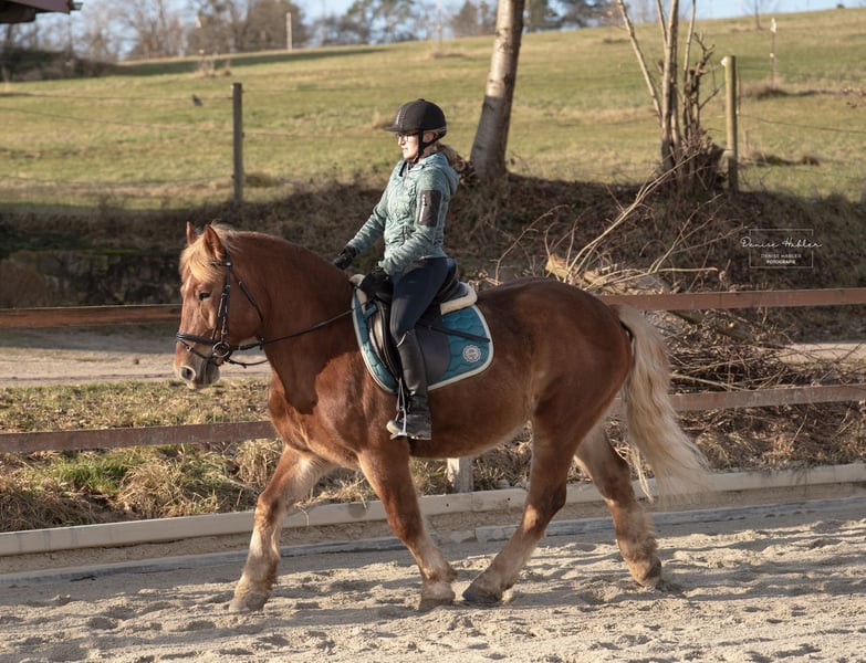 Zum Verkauf steht ein 7-jähriger polnischer Kaltblut-Mix mit durchaus viel Go und Arbeitsfreude. Er ist in allen drei Grundgangarten geritten – sowohl in der Halle als auch auf dem Sandplatz. Dabei zeigt er sich zuverlässig, egal ob alleine oder mit mehren Pferden. Im Gelände waren wir noch nicht so viel unterwegs aber die kurzen Strecken waren ebenfalls keine Probleme. Unter dem Sattel ist er brav und ehrlich, zeigt keinerlei Unarten wie Buckeln, Steigen oder Durchgehen. Dennoch ist er kein Anfängerpferd, da er sowohl im täglichen Umgang als auch beim Reiten anfangs gerne testet und eine konsequente, ruhige Hand benötigt. Bei klarer Führung entwickelt er sich zu einem motivierten und angenehmen Partner, der Freude an der Arbeit hat. Bei uns steht er momentan mit Wallachen im Offenstall. Diese oder ähnliche Haltung würden wir uns auch wieder für ihn wünschen. Stuten stehen nebendran, interessieren ihn bisher nicht. Zähne wurden vor ein paar Monaten gemacht. Reitvideos können gerne versendet werden. Bei Fragen einfach melden.