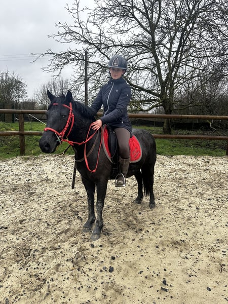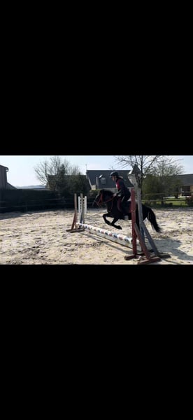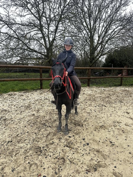 Tornado Poney ONC de 6 ans Hongre Noir 6 ans en 2026 Cavalier aux trois allures Commence à enchaîner un petit parcours Passage du bidet en cours Poney porteur Taille B (1m23) Ne tape pas Ne mord pas Fera un très bon poney de loisir voir de cso Pied sur en extérieur (balade en main) Identifié et pucé Dentiste 2025 (dents de loup retirées) ✅ Localisation : Aisne
