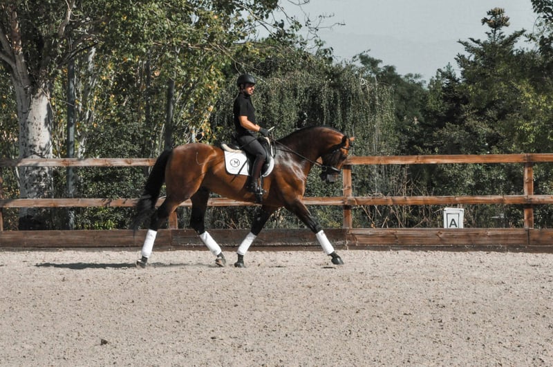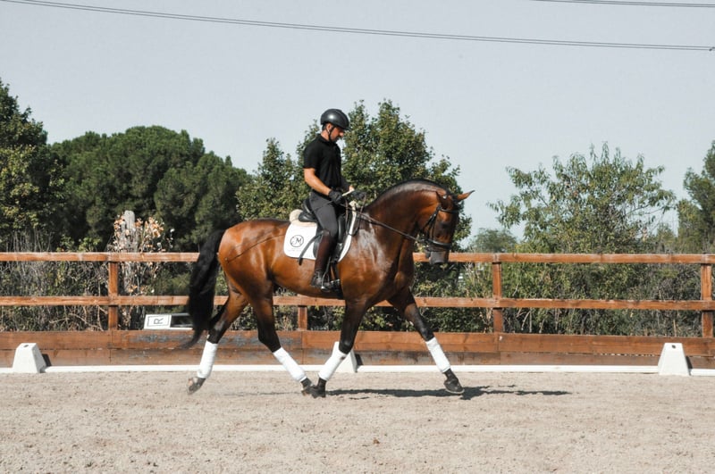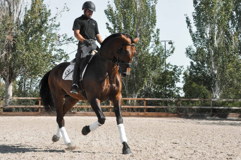 Uitstekende PRE, met grote geschiktheid voor dressuur, prachtig karakter, amplitude, flexibiliteit, schoonheid, grote hoogte en fantastische oorsprong (María Fernanda de la Escalera, Guardiola en Miura)