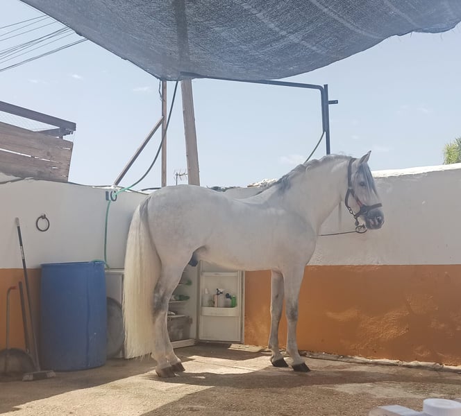 🐎 PRE Breeding Stallion for Sale – Competidor SB Name: Competidor SB Breed: Pure Spanish Horse (PRE) Age: 12 years Height: 167 cm Coat: Grey Location: Málaga, Spain Competidor SB is an approved breeding stallion, offering excellent qualities for breeding programs as well as riding. He has a very good and noble temperament, is easy to handle and behaves well with other horses. The horse is ridden both in the arena and outside, and is comfortable going on countryside rides and trail routes. This stallion shows the typical characteristics of the PRE breed: good morphology, expressive movement and versatility. Key points Approved PRE breeding stallion Registered in the official ANCCE studbook Good character and easy to handle Ridden in arena and countryside Good with other horses Suitable for breeding, leisure riding or dressage training 📍 Located in Málaga, Spain 📹 Videos available on request. Serious inquiries welcome.