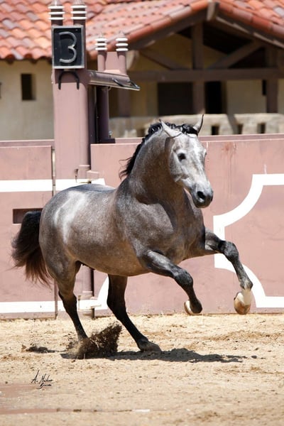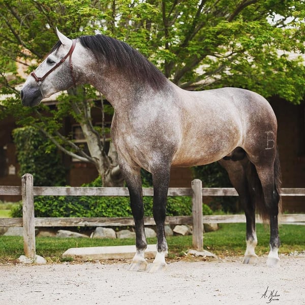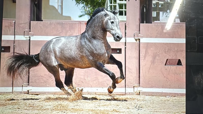 Trainero de Trujillo exemplifies the pinnacle of the PRE spectrum, hailing from Miguel Bohorquez’s renowned breeding program. Linebred on the influential Albero II, a cornerstone of the Spanish Olympic team, he also carries the prestigious bloodlines of Ganador VIII and Leviton, cementing his elite genetic legacy. With an exceptional genetic index score of 116.14, Trainero stands as a paragon of the Pura Raza Española (PRE) breed. This 17H (1.73m) stallion is a proven ANCCE champion in both Spain and the USA, earning accolades in limited showings and securing his place among the breed’s finest. Trainero is a rare opportunity to elevate your breeding program or competitive pursuits. His noble heritage, top-tier bloodlines, and championship show record has positioned him as an ideal candidate to advance your show string or produce world-class offspring in the breeding shed. He is heterozygous, carrying the bay and grey genes, to produce a broader spectrum of color. Trainero de Trujillo was selected, imported and shown by the TRUJILLO Team, the top breeder in the USA. Trainero brings the tier one quality to your breeding program, from his noble heritage, top bloodlines and stud farm, and proven championship titles. He stands as a champion, and now is your opportunity to own a living legend—Trainero de Trujillo, a stallion destined to leave an indelible mark on the PRE world. Located in No. California. LINK TO ANCEE page: https://www.lgancce.com/lgpreancce/asp-publico/arbolGenealogicoPRE/ConsultarArbolGenealogicoPRE.aspx?ID=CbbWU9eBW98=