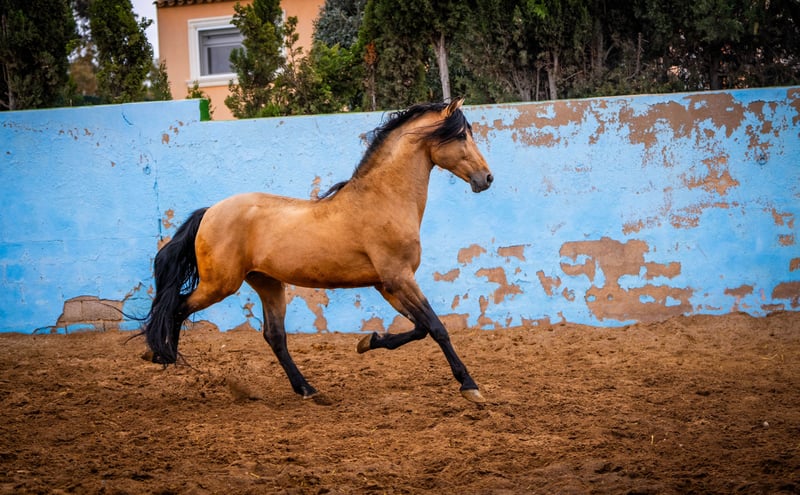 Prachtvoller und stolzer Zuchthengst mit langer Mähne bietet seine Samen an und wird ebenso verkauft.Geritten wird er in allen 3 Grundgangarten im Gelände und auf dem Platz. Er ist kein Anfänger Pferd aber brav im Umgang. Er verebt seine Schönheit und schwungvolle Bewegungen. Seine Farbanalyse lautet: ggEeAACCRppchchzz / Mehr Infos auf Anfrage! *Alle visuellen Inhalte, einschließlich Fotos und Videos, die von Caballoria S.L. präsentiert werden, sind urheberrechtlich geschützt. Dies bedeutet, dass die Vervielfältigung, Verbreitung, Anzeige oder jegliche Nutzung dieser Materialien ohne die ausdrückliche schriftliche Zustimmung von Caballoria S.L. strengstens untersagt ist. Das Urheberrechtsgesetz stellt sicher, dass die Urheber die Kontrolle über ihre Werke behalten und für deren Nutzung gebührend anerkannt und entschädigt werden.