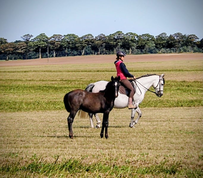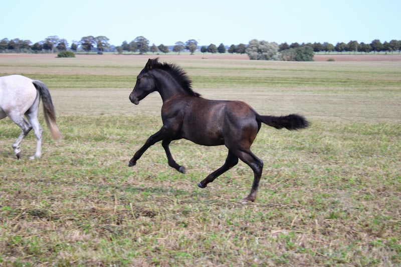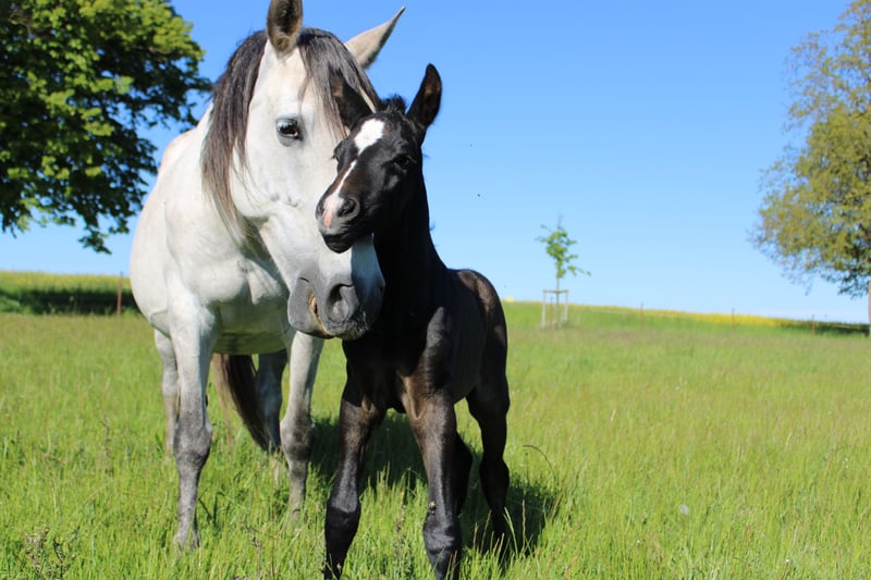 Unser Viento SP PRE (Picaza SMI PRE x Pacifico SMI PRE) ist am 15.05.2025 geboren. Ein wunderschönes, kräftiges, korrekt aufgemachtes Hengstfohlen, der wohl ein wahrlich prächtiger Schimmel werden möchte. Viento liebt ausgiebige Kuschel- und Putzeinheiten, gibt schon lieb seine Hufe und findet Ausflüge ins Gelände total spannend und großatig. Er ist sehr verspielt, dem Menschen extrem zugewandt, sehr neugierig, aber immer umsichtig. Sein Bewegungspotential hat er hervorragend von seinen Eltern mitbekommen. Mit viel Dynamik, Kraft und Schub tobt er über die Weide. Wer die tiefe Bindung zu schätzen weiß, die entsteht, wenn man von Fohlen- bzw. Jungpferbeinen an sein Pferd begleitet, für den könnte unser Viento SP genau der richtige Partner sein. Da beide Eltern gekört sind, erhält Viento volle Papiere der ANCCE. Auf dem letzten Bild und im Video sieht man auch Vientos Papa Pacifico SMI, der mit unseren Stuten zusammenlebt. Unsere Fohlen wachsen so in einer ganz friedvollen und liebevollen Familienherde auf und werden dadurch bestens sozialisiert.