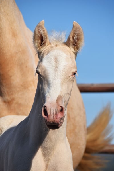 Atento is a stunning cremello PRE colt with rare coloring, correct conformation, and excellent bloodlines, making him a valuable candidate for both sport and breeding. His dam, Atenta VLR, is a proven broodmare and show horse. She has competed twice in Belgium at morphologic competitions, earning two silver medals, a testament to her quality and breed type. His sire, Efusivo A, brings a powerful genetic foundation. He is the grandson of two Calificado horses, the legendary Corinta and Romero XVIII. Efusivo is known for producing foals with expressive movement, excellent structure, and noble temperament. The rare cremello color of Atento makes him an attractive prospect for breeders looking to introduce dilute genetics into a PRE breeding program without sacrificing quality or type. We would have loved to keep him, but have chosen instead to retain his half-sisters on both his sire and dam's side, making Atento available to the right home. He is handled regularly, socialized, and developing a calm, intelligent, and curious nature. A unique opportunity to own a colt who combines color, quality, and proven lineage. Atento is fully ANCCE registered, has his carta and genetic testing done in ANCCE