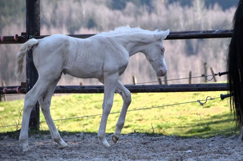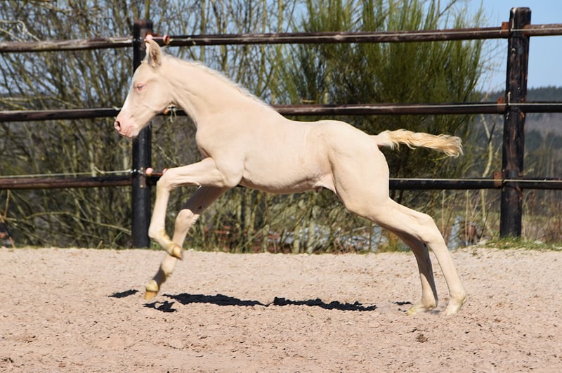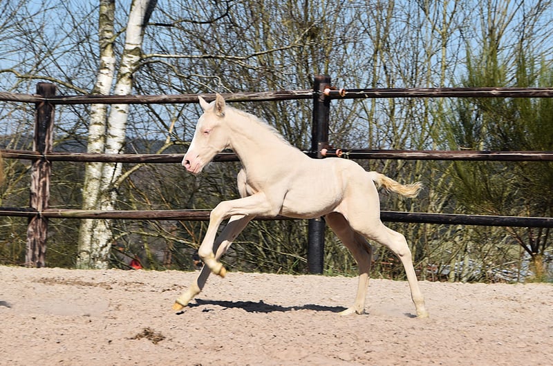 Atento ist ein atemberaubender cremello PRE-Hengstfohlen mit seltener Färbung, korrekter Konformation und hervorragenden Blutlinien, was ihn zu einem wertvollen Kandidaten sowohl für den Sport als auch für die Zucht macht. Seine Mutter, Atenta VLR, ist eine bewährte Zuchtstute und Turnierpferd. Sie hat zweimal in Belgien an morphologischen Wettbewerben teilgenommen und dabei zwei Silbermedaillen gewonnen, was ihre Qualität und den Rassetyp unterstreicht. Sein Vater, Efusivo A, bringt eine kraftvolle genetische Grundlage mit. Er ist der Enkel zweier Calificado-Pferde, der legendären Corinta und Romero XVIII. Efusivo ist bekannt dafür, Fohlen mit ausdrucksvoller Bewegung, exzellenter Struktur und edlem Temperament zu züchten. Die seltene cremello Farbe von Atento macht ihn zu einem attraktiven Kandidaten für Züchter, die verdünnte Gene in ein PRE-Zuchtprogramm einführen möchten, ohne dabei Qualität oder Typ zu opfern. Wir hätten ihn gerne behalten, haben uns jedoch entschieden, seine Halbschwestern sowohl von der Seite seines Vaters als auch seiner Mutter zu behalten, weshalb Atento für das richtige Zuhause verfügbar ist. Er wird regelmäßig gehandhabt, sozialisiert und entwickelt eine ruhige, intelligente und neugierige Natur. Eine einzigartige Gelegenheit, ein Fohlen zu besitzen, das Farbe, Qualität und bewährte Abstammung kombiniert. Atento ist vollständig ANCCE-registriert, hat seine Carta und genetische Tests in ANCCE durchgeführt.