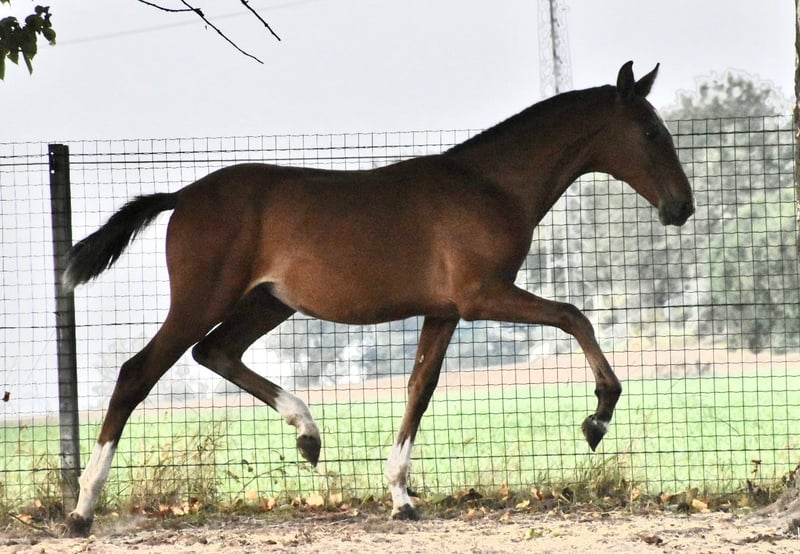 ✨ Superbe poulain PRE bai disponible – 9 mois ✨ Un jeune mâle qui réunit des origines d’exception et un avenir prometteur, autant pour le sport que pour l’élevage : 🔹 Père : Poeta de Susaeta 🏆 – Multi-champion des jeunes chevaux, vainqueur au SICAB et reproducteur recommandé/Améliorateur de la race (très rare). 🔹 Mère par Doblon TR 🥇 – Étalon élite de la race, performer international jusqu’au Grand Prix. 🔹 Dans son pedigree figurent également les légendaires Cacique et Ermitano, piliers de l’élevage PRE. Ce poulain séduit déjà par : ✨ Des allures expressives et élégantes ✨ Un charisme hors du commun ✨ Un tempérament proche de l’homme, facile au quotidien 👉 Un futur partenaire aussi bien pour la compétition que pour l’élevage, avec des papiers uniques et une présence qui ne laisse pas indifférent. N’hésitez pas à nous contactez pour plus d’informations et vidéos ! Dernières photos le père et la mère