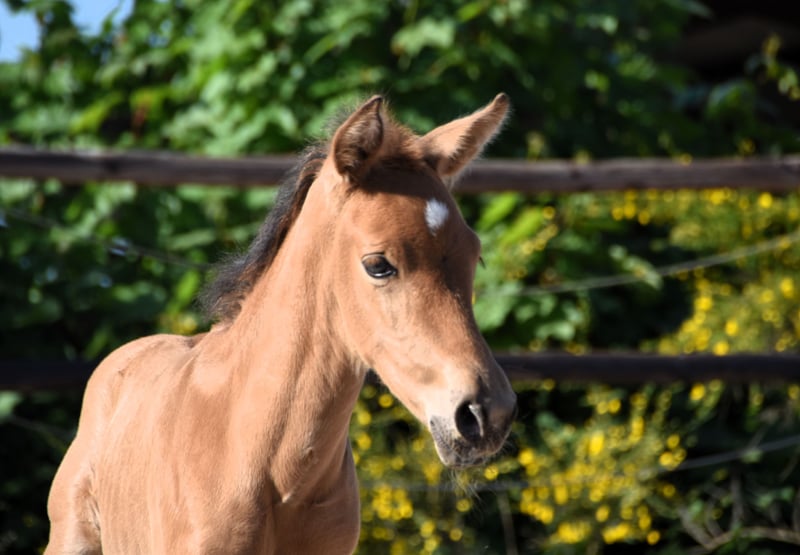 Requero est un poulain PRE isabelle née le 08/05/2025 hors de Hermosa Maynou et Mar Wonderful. Hermosa Maynou, élevé par Can Maynou est une jument alezane, très baroque, fille de l'étalon calificado Nostalgico X et de lignée Granda Losada et Militar. Hermosa plait aux amoureux de l'ancien type avec une morphologie compacte et une arrière main puissant. Son père n'est autre que notre propre Mar Wonderful, un étalon perlino mesurant 1,60 m. Un étalon courageux et posé dans chaque situation; qui transmet ses excellentes allures. Nous avons également conservé plusieurs de ses descendants, c'est pourquoi nous avons pris la décision difficile de proposer cette pouliche à la vente, même si nous croyons fermement en son avenir. Requero est un jeune poulain déjà inscrit au studbook ANCCE, livré avec sa carte titulaire ainsi que son test génétique confirmant sa couleur isabelle. Élevé en troupeau et vivant au pré, il bénéficie d’un développement équilibré et naturel, tant sur le plan physique que mental. Il sera vermifugé régulièrement afin de garantir son bon suivi sanitaire. Pour son départ, le transport ainsi que les documents TRACES peuvent être organisés. Un poulain prometteur, porteur de belles origines et d’un charme authentique. N'hésitez pas à nous contacter si vous souhaitez plus d'information ou venir à son rencontre