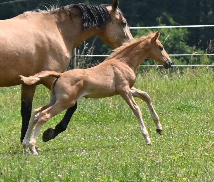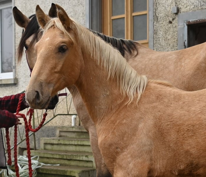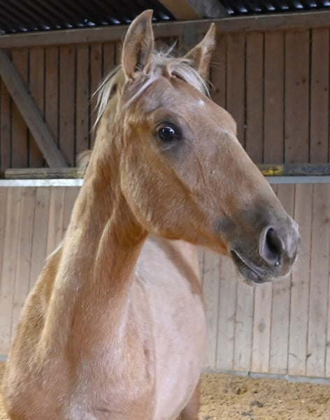 Lozano Kubny est un magnifique poulain PRE, correct et prometteur. Il a toutes les portes ouvertes, que ce soit pour le dressage, la Working Equitation, comme étalon ou pour une activité de loisir plus noble. Il atteindra environ 1,67 à 1,70 m au garrot, avec un mouvement correct, bien développé et ample. Lozano recevra un certificat complet de l'ANCCE. Nous attendons encore le résultat du test ADN pour la détermination de la couleur. Il a les yeux verts, qui resteront ainsi. Tous mes poulains apprennent un excellent apprentissage de base et sont habitués aux enfants, aux chiens, aux autres animaux de la ferme ainsi qu’aux tracteurs. Il restera avec sa mère Silueta MAZ jusqu’à la fin octobre. Ensuite, Lozano pourra partir ou rester chez nous pour une croissance supplémentaire. Bien entendu, il sera vermifugé à plusieurs reprises d’ici là. Son père est l’étalon Cremello Silenzio MAZ.