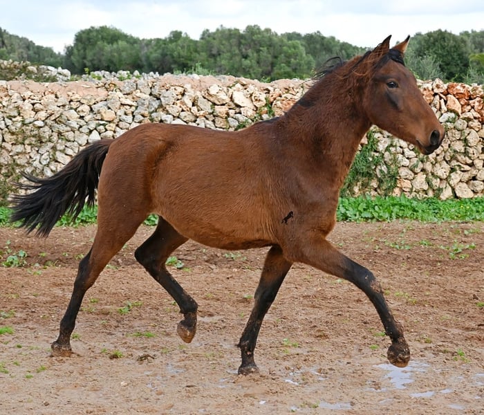 Noch ist dieser 2024 geborene PRE Hengst (Andalusier mit Rassenachweis der ANCCE), ein süßer Schatz. Aber ers gibt schon Momente, wo er sich stolz in der Bewegung präsentiert und zeigt, was er für ein schicker Kerl wird ;) Väterlicherseits hat er viel Escalera-Blut in der Abstammung und daher kommt bestimmt auch sein menschenfreundlicher, offener Charakter. Denn immer wieder kam er neugierig zu mir im Freilauf, um kurz Hallo zu sagen. Der Züchter legt großen Wert darauf, dass die Hengste bis mindestens 3 Jahre in der Hengstherde aufwachsen. So kommt es, dass er bei der Regensaison auf Menorca plüschiges Fell und etwas Panier im Fell hat, aber nur ein Indiz auf das natürliche Aufwachsen ;) Der Youngster ist sehr neugierig und aufgeschlossen und hat keinerlei Hengstmanieren, wobei er noch komplett roh ist. Er hat eine schöne Bewegung und sein zu erwartendes Endmaß wird leicht über 160cm liegen. Für all jene die keinen Hengst halten können, besteht natürlich auch die Option der Kastration vor Ort. Sein Standort ist Menorca. Videos und Abstammung gerne auf Anfrage. Gerne organisiere ich vor Ort eine AKU, Beritt, Kastration, Transport oder auch ihre Reise, sollten Sie persönlich zum Anschauen kommen. Details dazu gerne auf meiner Seite oder im Gespräch. Saludos aus Spanien