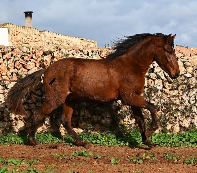 Dieser 2023 geborene PRE Hengst (Andalusier mit Rassenachweis der Ancce), ist ein richtiges Rohjuwel. Der Züchter legt großen Wert darauf, dass die Hengste bis mindestens 3 Jahre in der Hengstherde aufwachsen. So kommt es, dass er bei der Regensaison auf Menorca plüschiges Fell und etwas Panier im Fell hat, aber nur ein Indiz auf das natürliche Aufwachsen ;) Der Youngster ist sehr neugierig und aufgeschlossen und hat keinerlei Hengstmanieren, wobei er noch komplett roh ist. Freunde des klassischen PRE, werden beim Anblick auf seine Abstammung die Augen vor Freude leuchten! Denn er ist ein Sohn des Yeguada Militar (CARTUJANO) Hengstes UCLES II und väterlicherseits komplett Yeguada Militar gezogen! Mütterlicherseits kann sich auch sehen lassen, denn nicht nur hat er Escalerablut, sondern ist sogar ein Abkömmling des ELITEhengstes EDUCADO X von Guardiola! Daher kommt auch seine gute Bewegung und das barocke, nicht zu riesige Exterieur. Aktuell liegt er bei 154cm Stockmaß und wird auch noch einige Zentimeter wachsen, dennoch bestimmt im klassischen Typ des PRE bleiben und kein "Riese" werden. Er ist ein klassicher Brauner mit schwarzen Socken und schwarzer Mähne, aufgelockert durch einen kleinen Stern. Es besteht die Möglichkeit, dass er vor Ort noch antrainiert wird und aufs Reitpferdeleben vorbereitet wird. Für all jene die keinen Hengst halten können, besteht natürlich auch die Option der Kastration vor Ort. Sein Standort ist Menorca. Videos und Abstammung gerne auf Anfrage. Gerne organisiere ich vor Ort eine AKU, Beritt, Kastration, Transport oder auch ihre Reise, sollten Sie persönlich zum Anschauen kommen. Details dazu gerne auf meiner Seite oder im Gespräch. Saludos aus Spanien