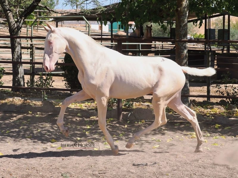 We present an extraordinary Pura Raza Española (PRE) colt, born in 2024, who at just a few months old already stands out for his impressive presence and a current height of 158 cm, which suggests a harmonious development and projection towards an ideal size for the discipline of dressage. This young colt embodies everything lovers of the PRE look for: a strongly defined morphology, with a well-set neck, powerful croup, and solid limbs that promise strength and endurance. His noble and alert expression, combined with a balanced temperament, make him a highly interesting horse both for breeding and for future sporting projects. What truly makes him unique, however, is his rare cremello coat, a feature seldom found within the breed, which sets him apart from the majority and makes him an exclusive jewel in the PRE world. This singularity elevates him as the perfect choice for breeders or riders seeking a horse not only functional and high-quality, but also with great aesthetic and genetic value. The combination of racial beauty, a rare coat color, and promising physical development make this colt an example difficult to find in today’s market. A genuine opportunity for those who wish to invest in a future horse that embodies distinction, quality, and authenticity.