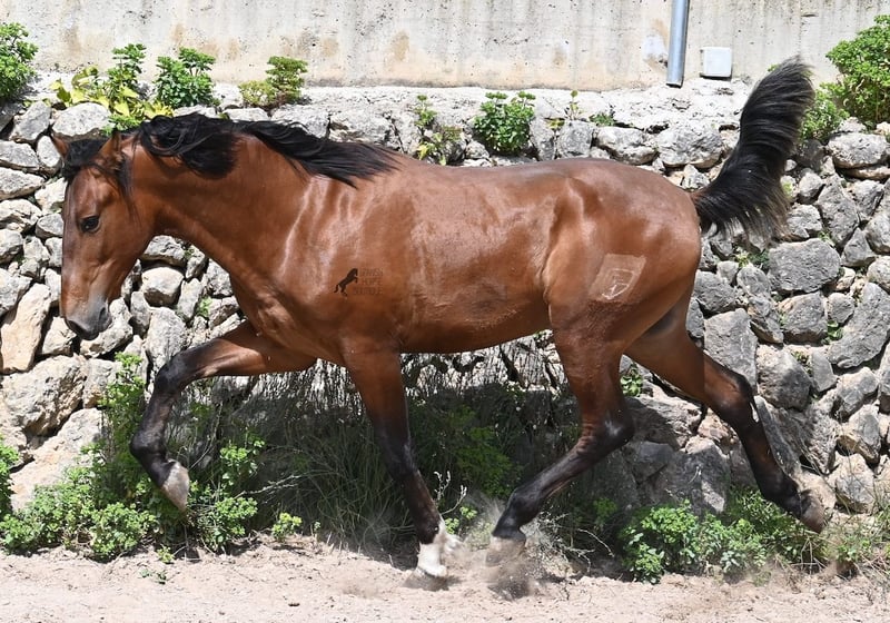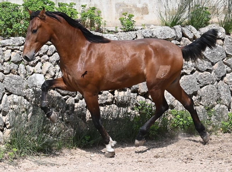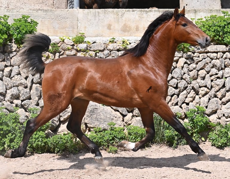 Dieser 2024 geborene, reinrassige PRE (Andalusier mit Rassenachweis der ANCCE), ist in vielerlei Hinsicht, ein hochkarätiger Nachwuchshengst. Sein Vater ist mehrfach SICAB qualifiziert (Weltmeisterschaft der Morfologie) und ein vielversprechendes Pferd in der Dressur. Der Youngster ist ein Enkel von YUCATAN DE RAMOS, der bekanntlich der Sohn des ELITE Hengstes UTRERANO VII ist. Väterlicherseits ist der Bub ein Abkömmling des Mejorante Hengstes BELMONTE XXVII und somit ist der ELITE Hengst EDUCADO X ebenso in der Abstammung. Die Creme de la Creme an Vorfahren, zeigt sich in seinen Qualitäten, sowohl in den hervorragenden Gangarten, sowie dem freundlichen Charakter und rassetypischen Aussehen. Da seine nächsten Vorfahren alle groß sind (über 170cm), wird auch er mit schon aktuell 165cm ein sehr großer Rassevertreter, wie es der moderne Typ des PRE wünscht. Er ist altersbedingt nur halfterführig und darf ansonsten sein Leben in altersgleicher Gesellschaft genießen- das sieht man auch an manchen Kindergartenwunden ;) Sein glänzendes Braun mit der schwarzen Mähne und weißen Söckchen, gibt ihm einen schönen Look und was besonders ist- es sieht so aus, als würde der Schweif noch weiß werden! Er ist gut sozialisiert und hat auch im Freilauf erstmal den Nachbarn hallo gesagt, noch mit unterwürfigem Zähneklappern der Fohlen, also kein Hengstverhalten. Sein Preis ist für die Qualität mehr als fair und er wird sowohl für die Dressur, Show, Working Equitation und Zucht interessant. Für all jene, die keinen Hengst halten können, ist selbstverständlich die Kastration vor Ort möglich. Aktuell steht er auf Mallorca! Videos und Abstammung gerne auf Anfrage. Gerne organisiere ich vor Ort eine AKU, Kastration, Beritt, Transport oder auch ihre Reise, sollten Sie persönlich zum Anschauen kommen. Details dazu gerne auf meiner Seite oder im Gespräch. Saludos aus Spanien