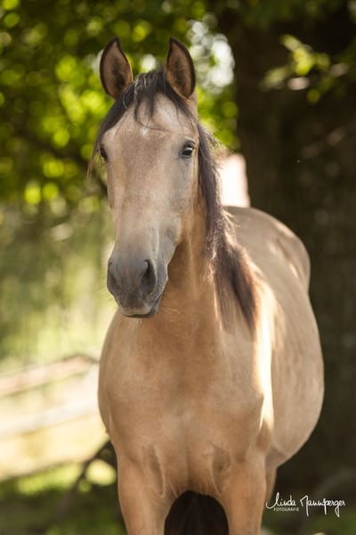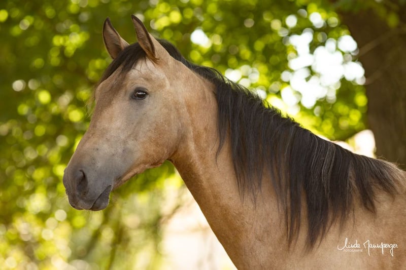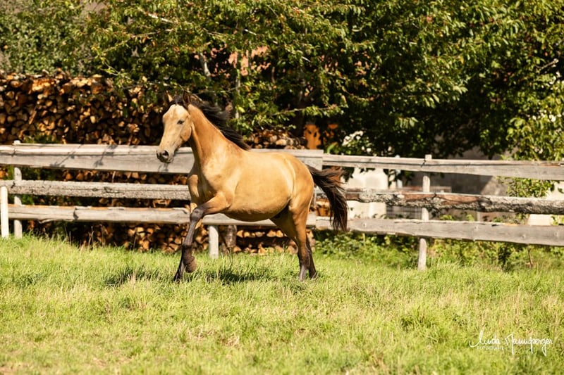 Darf ich vorstellen: Magic Joy’s Dante, ein beeindruckend großrahmiges PRE-Hengstfohlen mit edler Erscheinung, ruhigem Wesen und der seltenen Sonderfarbe Buckskin (Falbe - Farbtest liegt vor). Geboren: 09.04.2024 Abstammung: – Vater: Dagon Uco (1,62 m) – ausdrucksstarker, barocker PRE-Hengst mit hervorragenden Gängen und viel Präsenz – Mutter: Bruja MMJ (1,68 m) – großrahmige, rittige Stute mit ausgeglichenem Charakter und Nervenstärke Zuchtbuch: volle ANCCE-Papiere Aktuelles Stockmaß: ca. 1,58m – Endmaß über 1,65-1,70 m zu erwarten Dante vereint die Coolness und Gelassenheit seiner Mutter mit der Eleganz und Versammlungsfähigkeit seines Vaters. Durch seine imposante Größe, die seltene Farbe und seinen aufgeschlossenen, menschenbezogenen Charakter ist er ein echter Hingucker mit bestem Potenzial für Dressur, Working Equitation oder anspruchsvolle Freizeitreiter, die Wert auf Charakter, Rittigkeit und Ausstrahlung legen. Er wächst bei uns in robuster Offenstallhaltung auf, gemeinsam mit weiteren Fohlen und Jungpferden. Dadurch ist er bestens sozialisiert, kennt alle alltäglichen Umwelteinflüsse (Traktoren, Schafe, Kühe, Hühner, spielende Kinder u.v.m.) und zeigt sich stets neugierig und ausgeglichen. Wir legen großen Wert auf ein natürliches Absetzen durch die Mutterstute – Bruja hat Dante inzwischen sanft entwöhnt, sodass er nun bereit ist, in ein neues Zuhause zu ziehen. Auf Wunsch kann er auch weiterhin zur Aufzucht bei uns im Gestüt Magic Joy bleiben. 📍 Standort: PRE-Gestüt Magic Joy, Feuchtwangen (Bayern) 🌐 www.pre-zucht-magic-joy.de 📞 Bei Interesse oder Fragen freuen wir uns über Ihre Anfrage: WhatsApp 017631763049