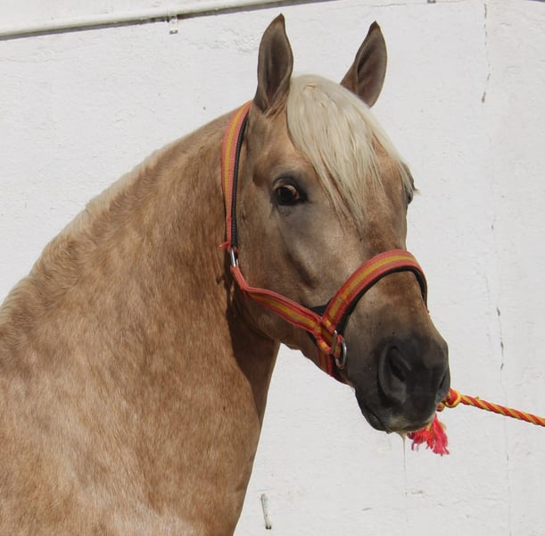 Jaranero ist ein 2 1/2 jähriger PRE in ANCCE als Palomino eingetragen mit Gentest. Er ist ein sehr lieber Kerl, klar im Kopf und menschenbezogen. Kompakt, kräftig und elegant wie der typische Spanier aussehen sollte. Jaranero ist longiert und hatte auch schon mal einen Sattel drauf, was er gelassen und cool über sich ergehen lässt. Wer einen Freund fürs Leben zum selber ausbilden sucht, ist bei diesem hübschen Kerl genau richtig. Auf Wunsch kann er auch bei uns zum Beritt bleiben. Eine AKU kann in Auftrag gegeben werden. Der Transport wird international organisiert. Videos auf Anfrage