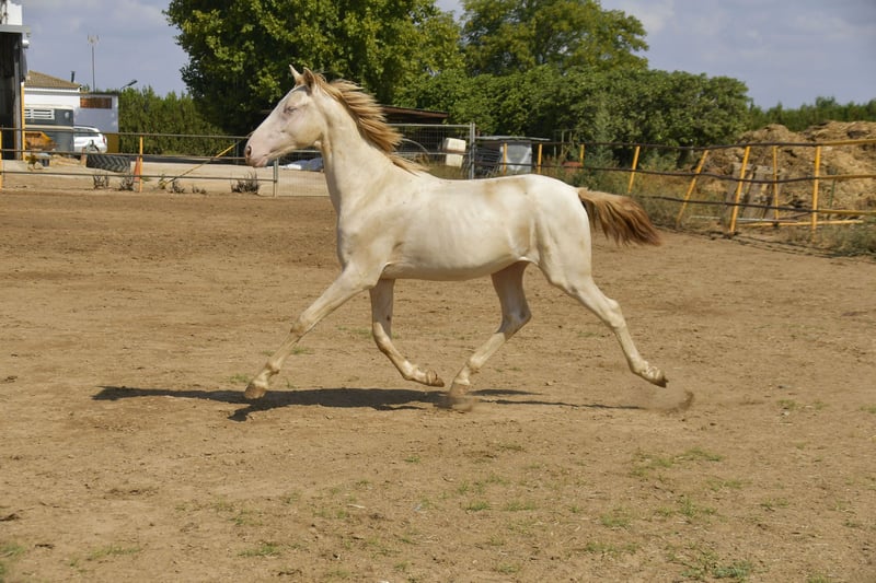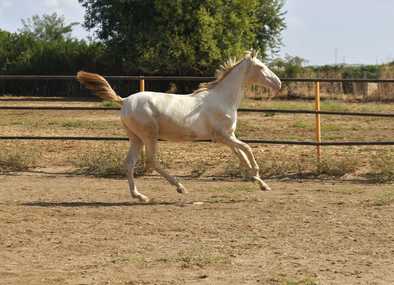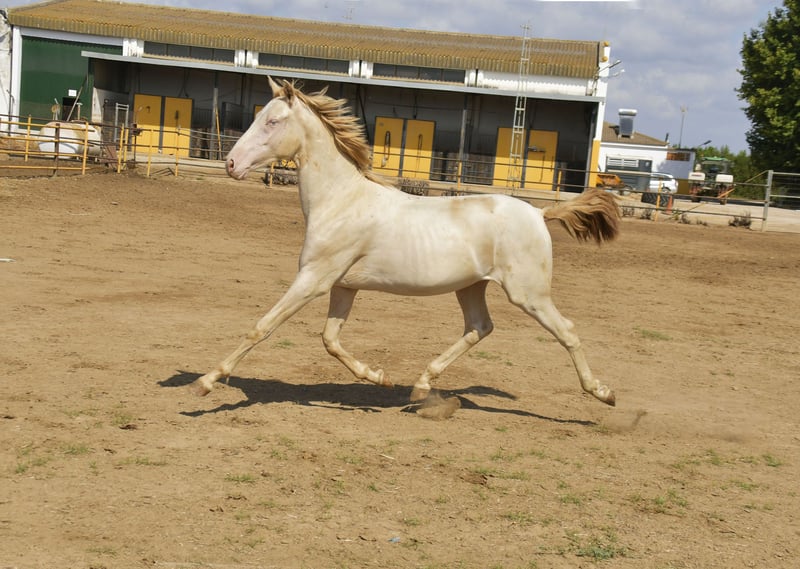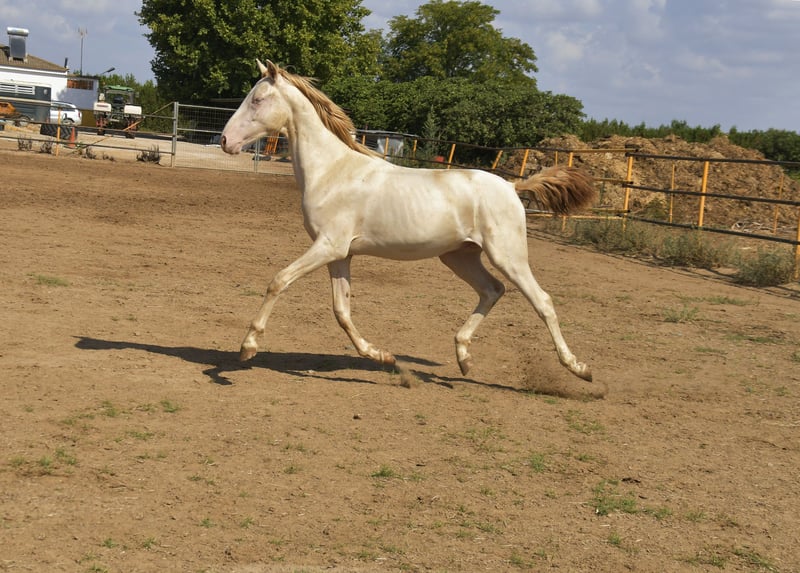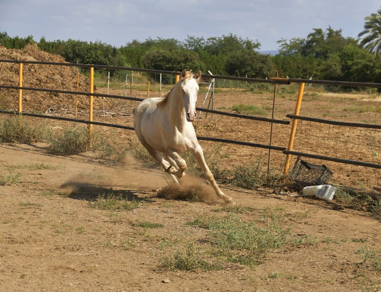 Hello friends! Today we have something special for you. Pura Raza Española . Full papers Perlino. He's turning two years old beginning next year. He stands out not only for its speacial and attractive color but also for it's movements. He's being raised in a big farm with other horses . Good value for money . Transport can be easily organised. More information send us private message or contact us via WhatsApp +34 620247441