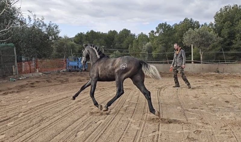 Promising PRE young stallion from family breeding, best breeding lines, species-appropriate rearing. Current height 1.58m, expected final height over 1.65m. Location Valencia. Videos are available.